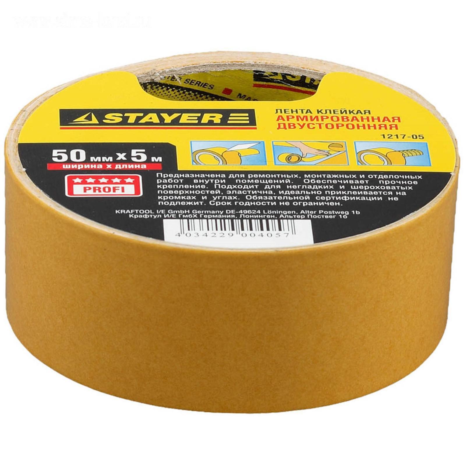 Лента клейкая STAYER Profi 1217-05, двухсторонняя, на тканевой основе, 50мм х 5м