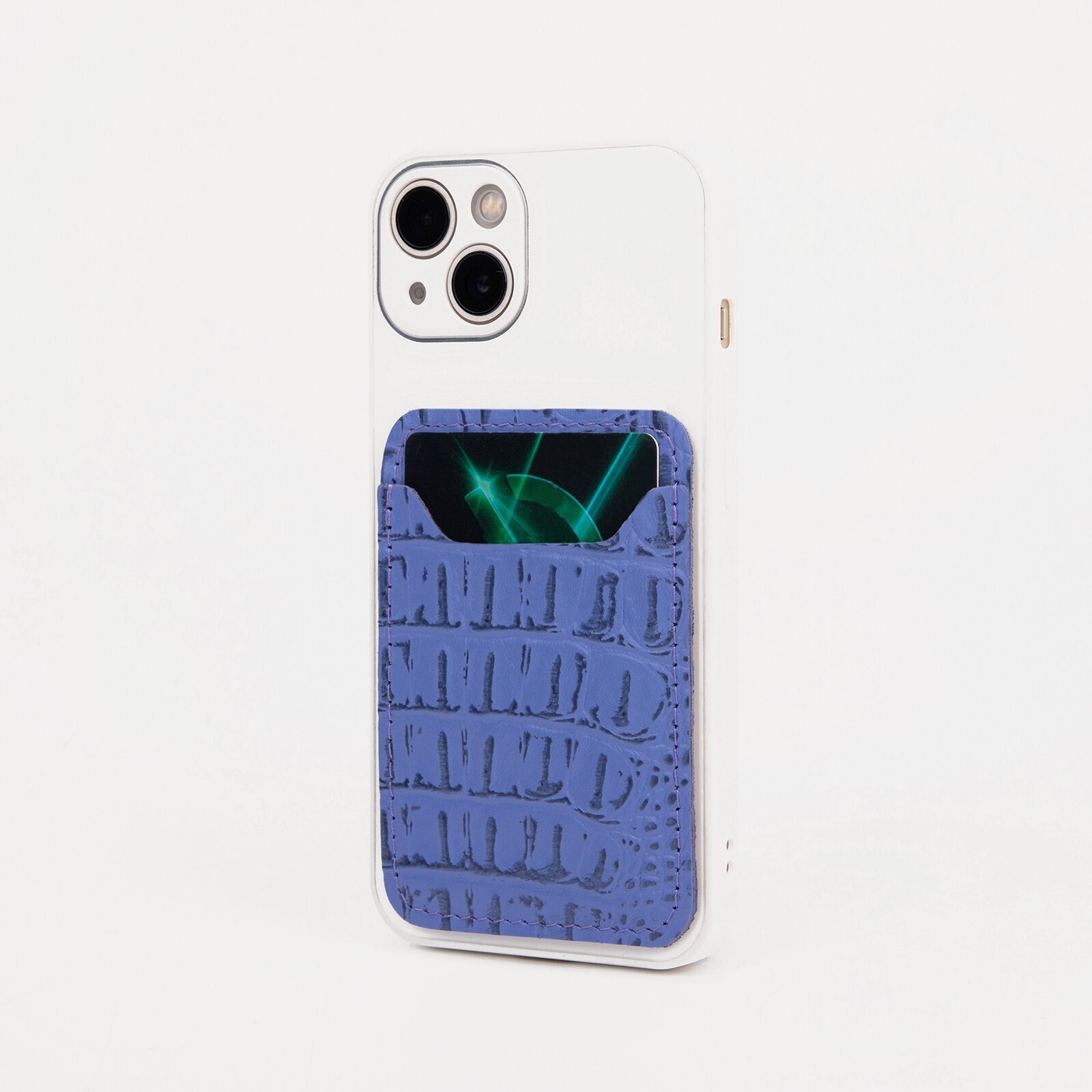 Картхолдер на телефон, кожа кайман, цвет сиреневый