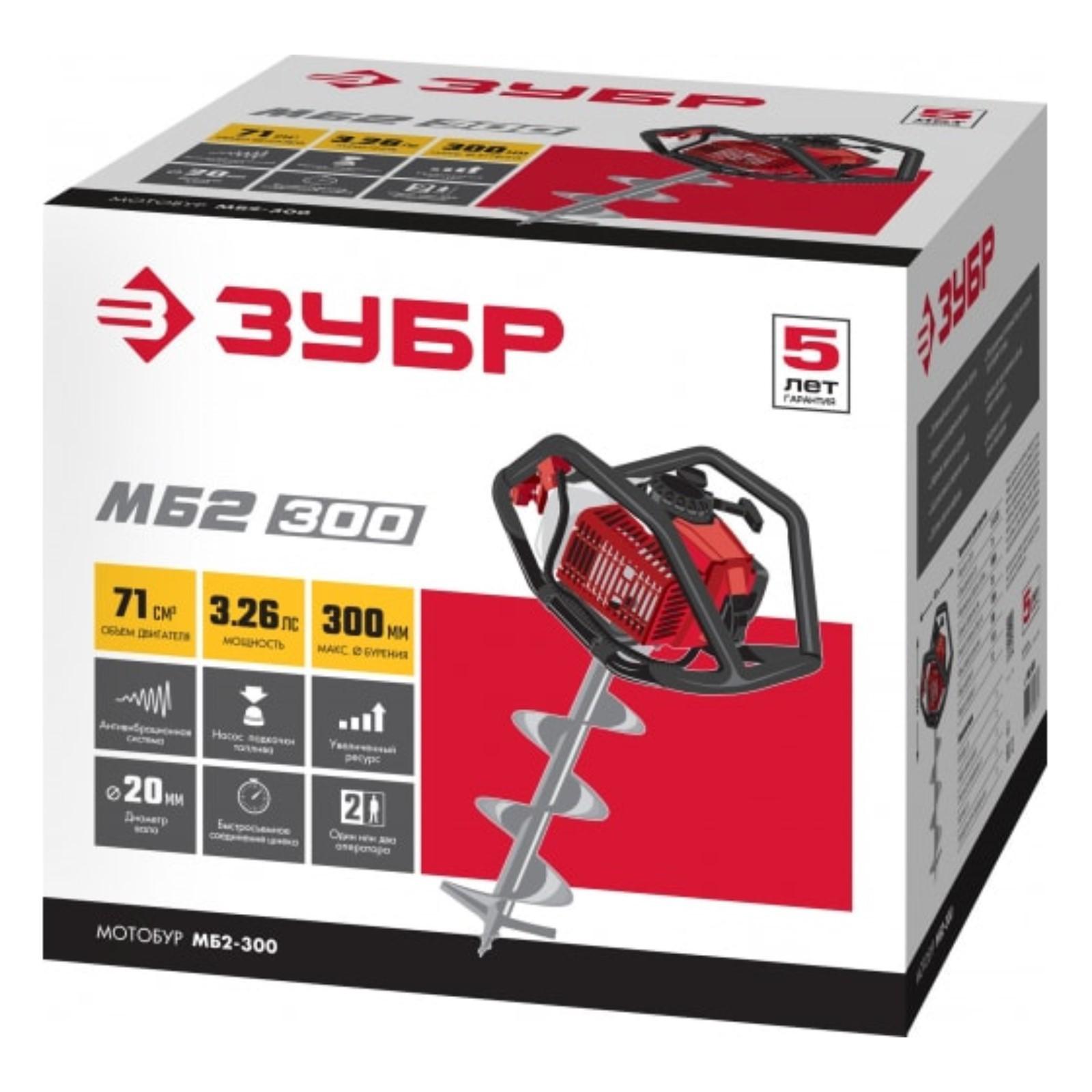 Мотобур ЗУБР МБ2-300, бенз., 2.4 кВт, 3.26 л.с., 71 см³, 8000 об/мин, 1.2 л, max d=300 мм