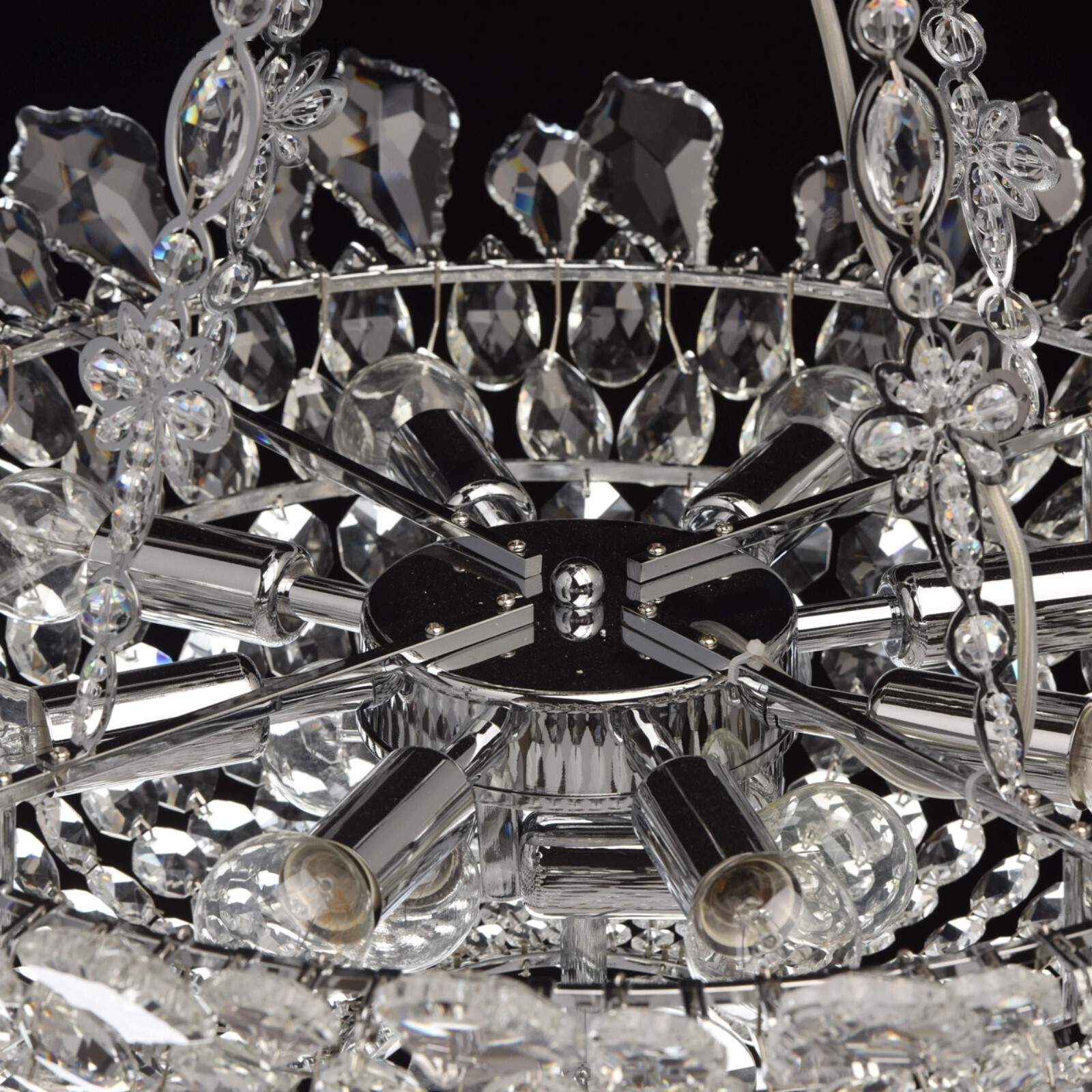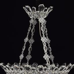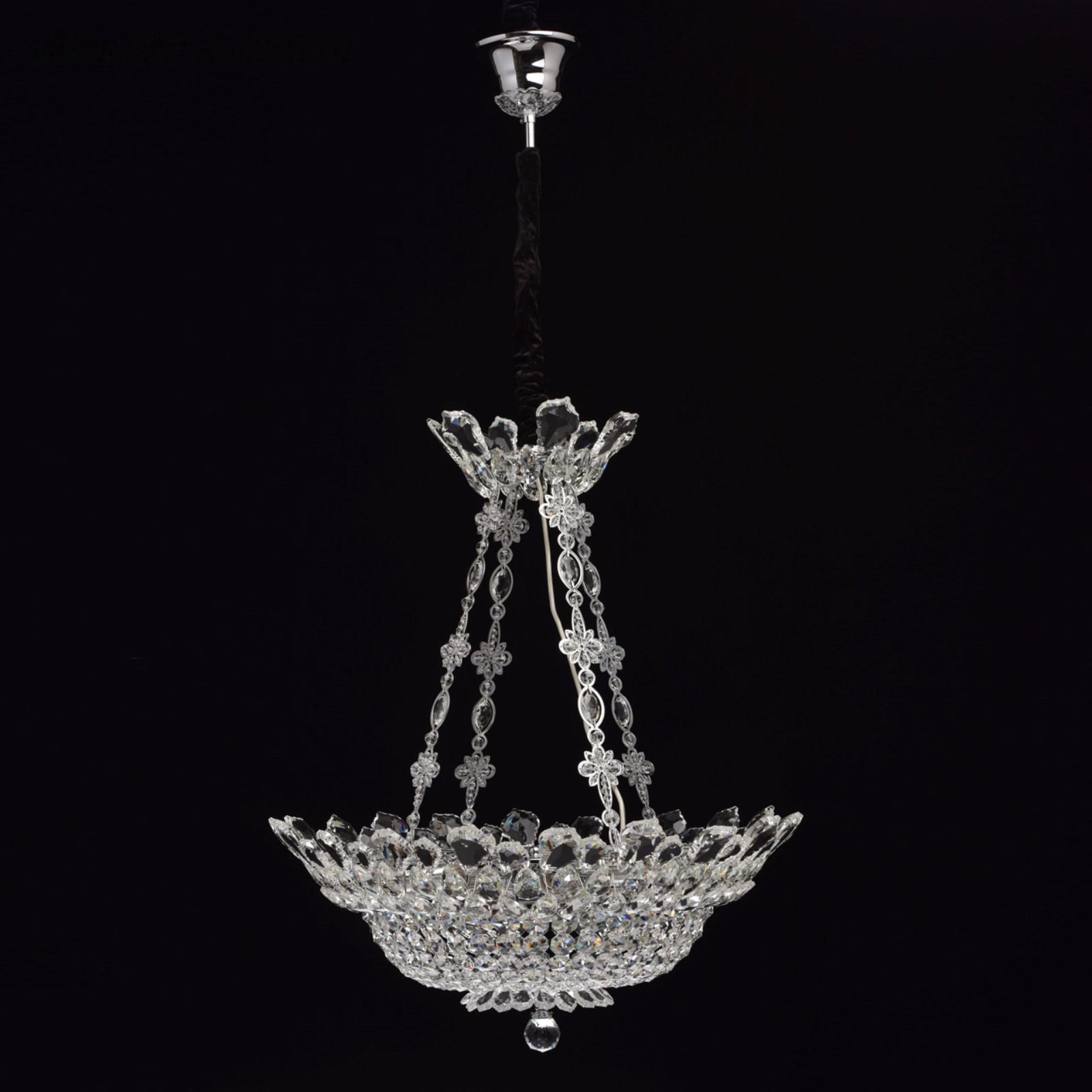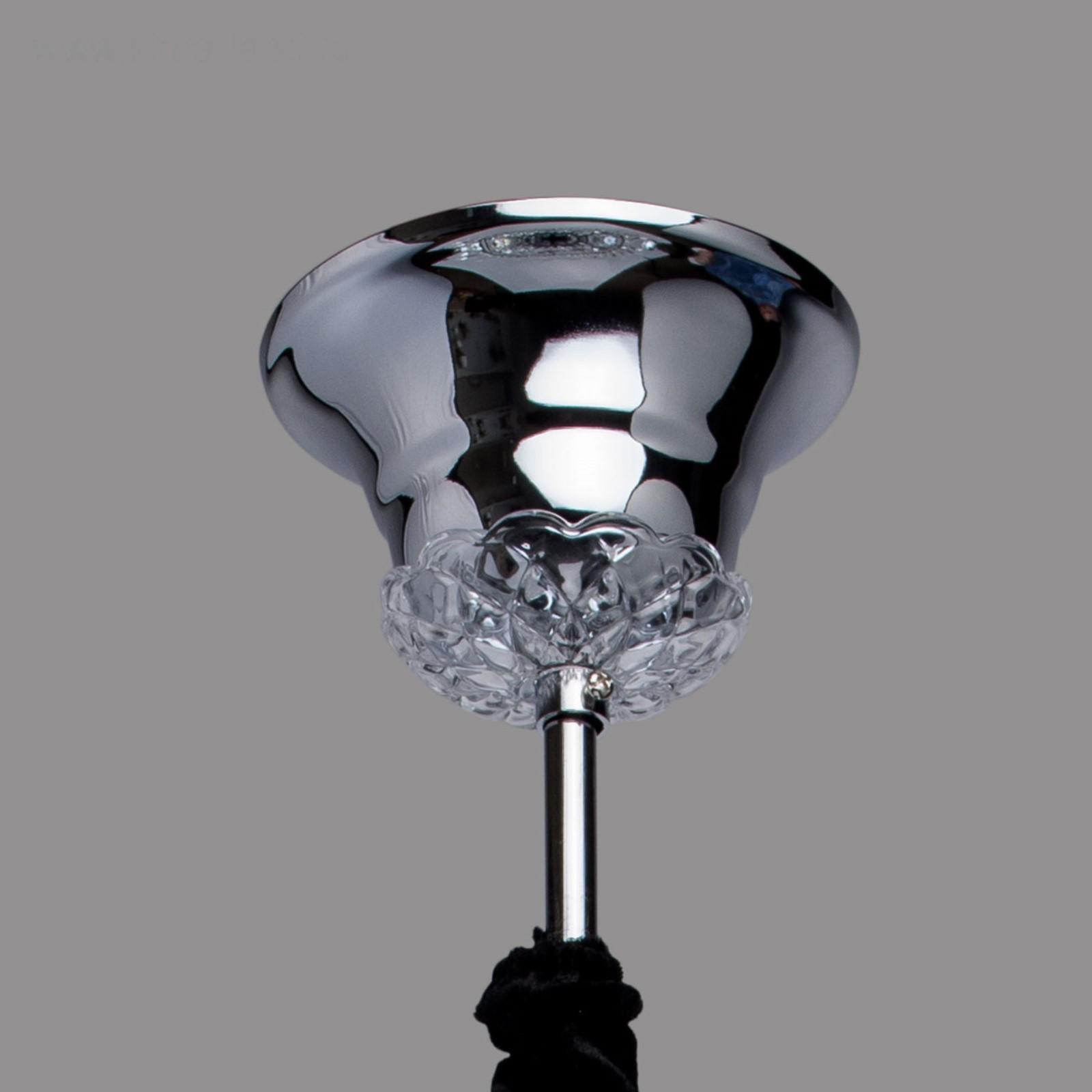 Плафон: металлический каркас в цвет основания, декорирован крупным прозрачным хрусталем различных форм и огранки.