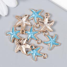 Декор для творчества металл, эмаль "Морская звезда" голубой 1,5х2 см