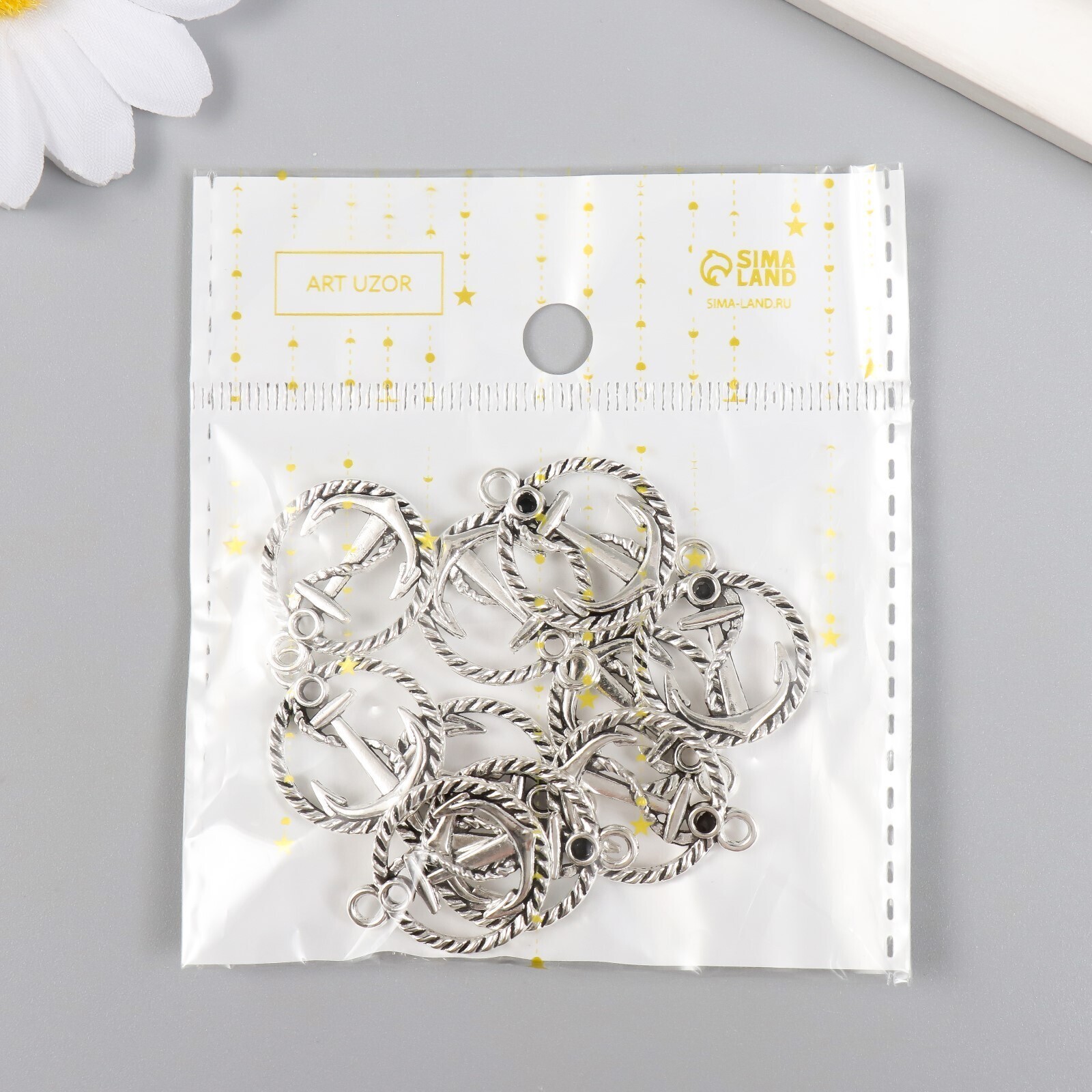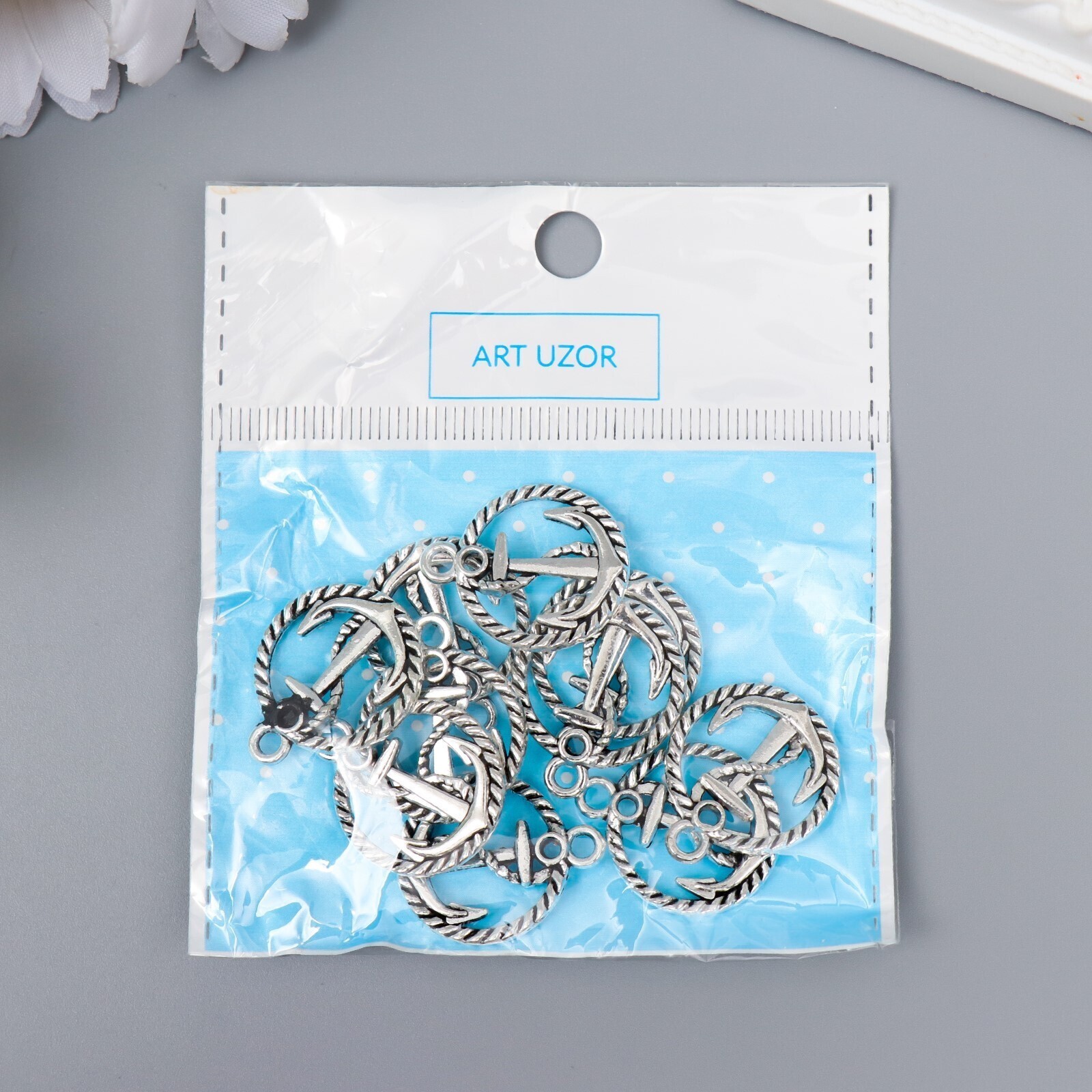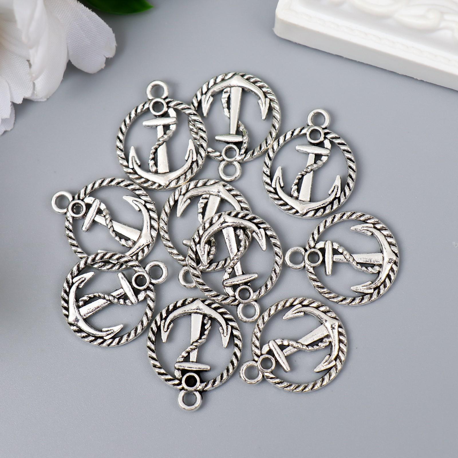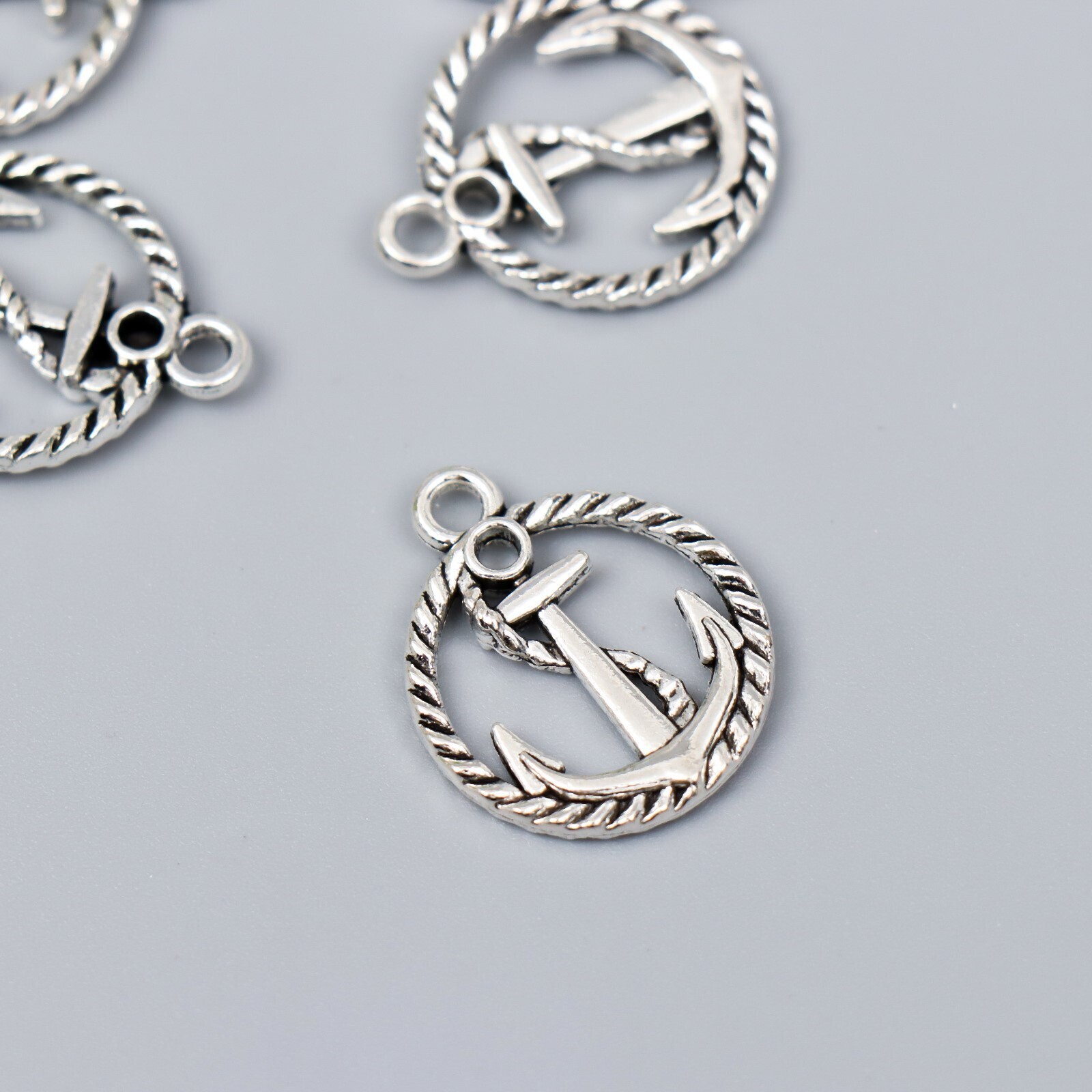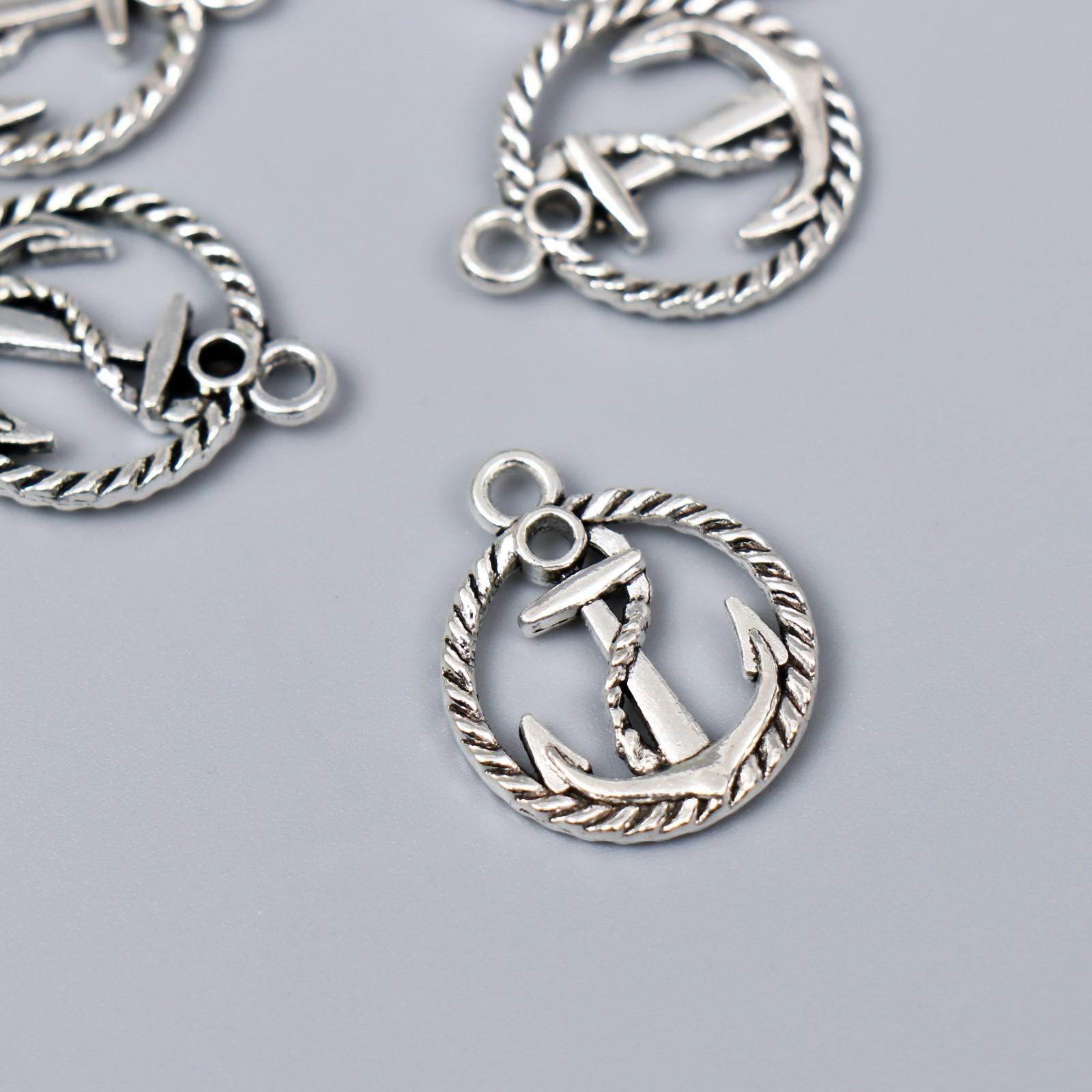 Декор металл для творчества "Якорь с веревкой в круге" серебро G239B598 2,4х2 см