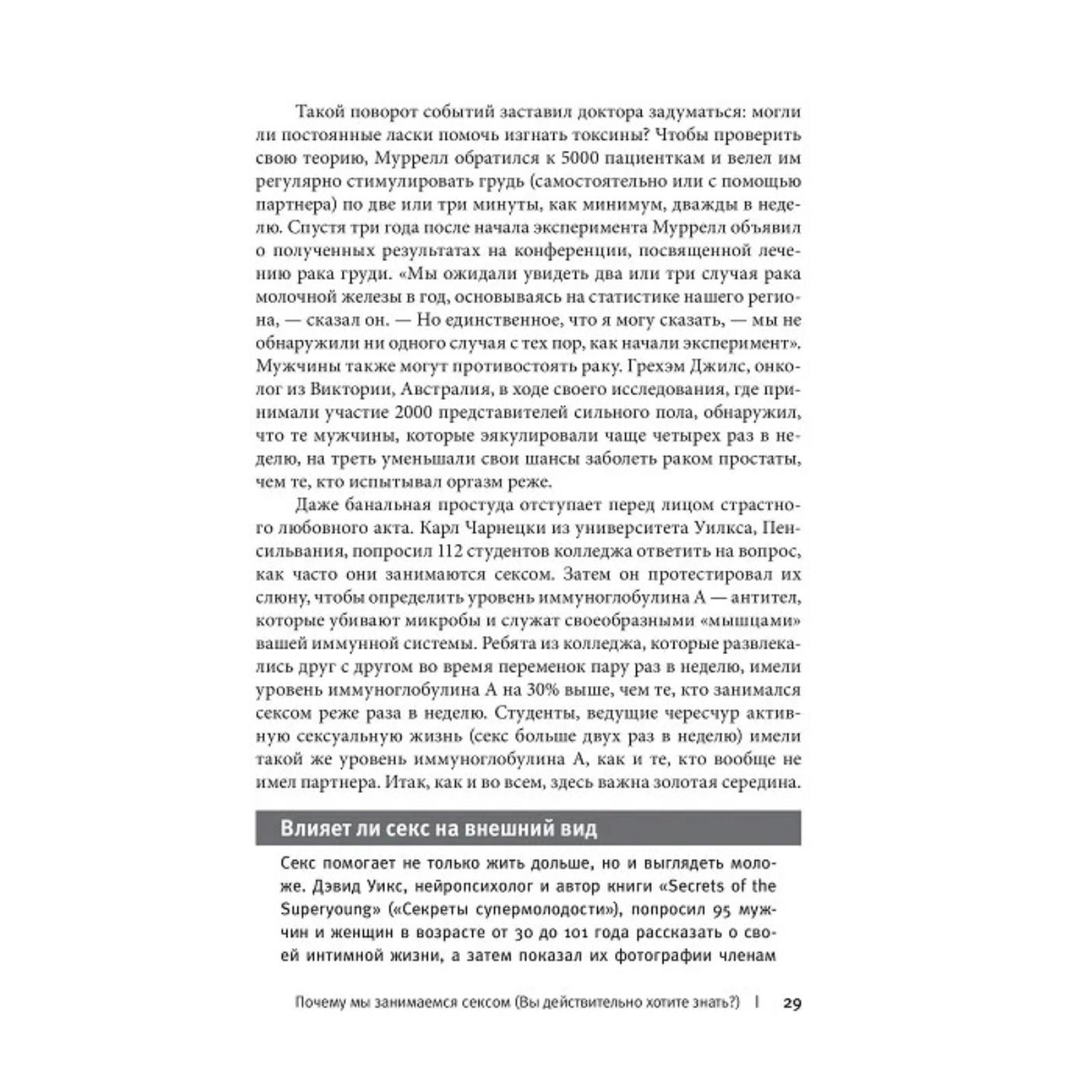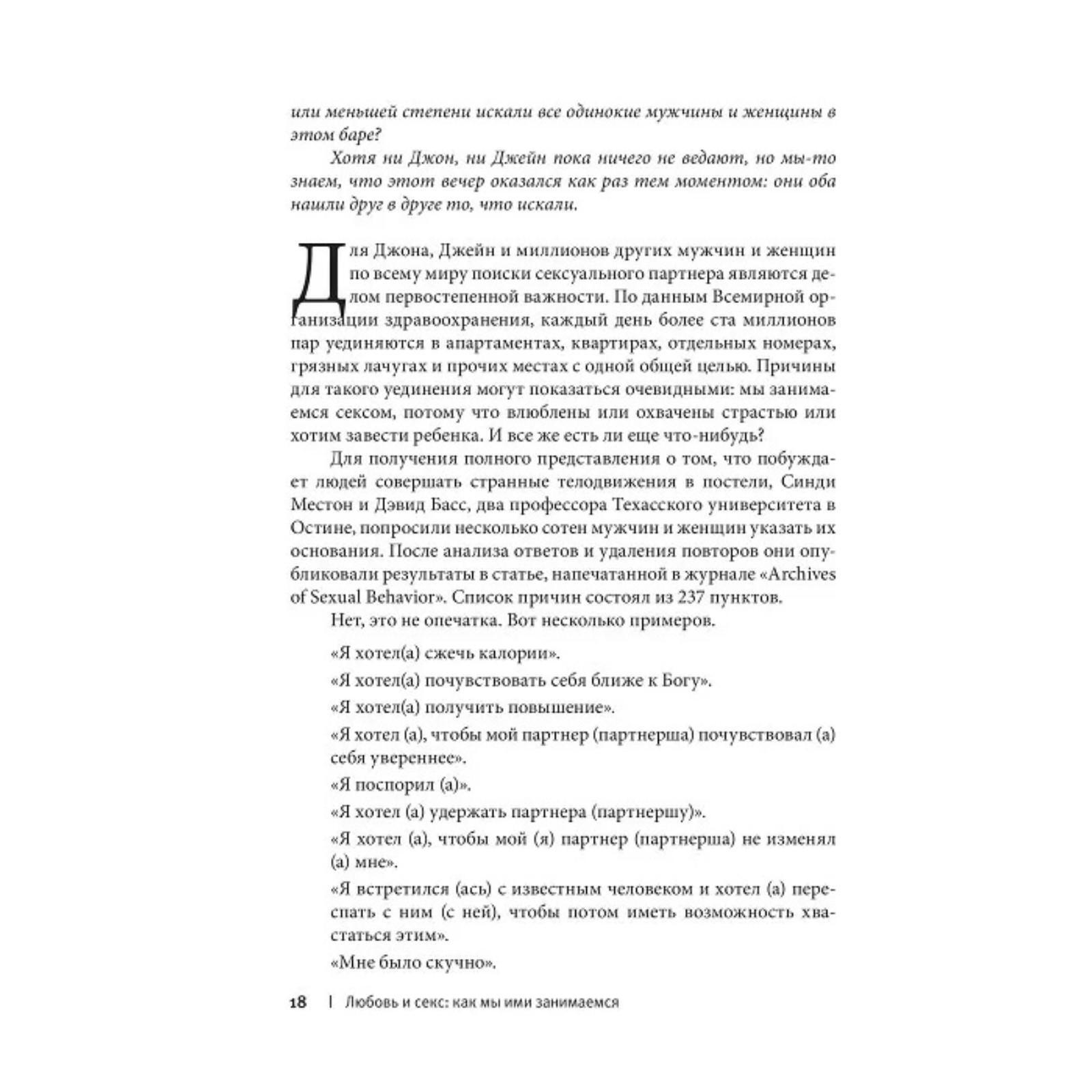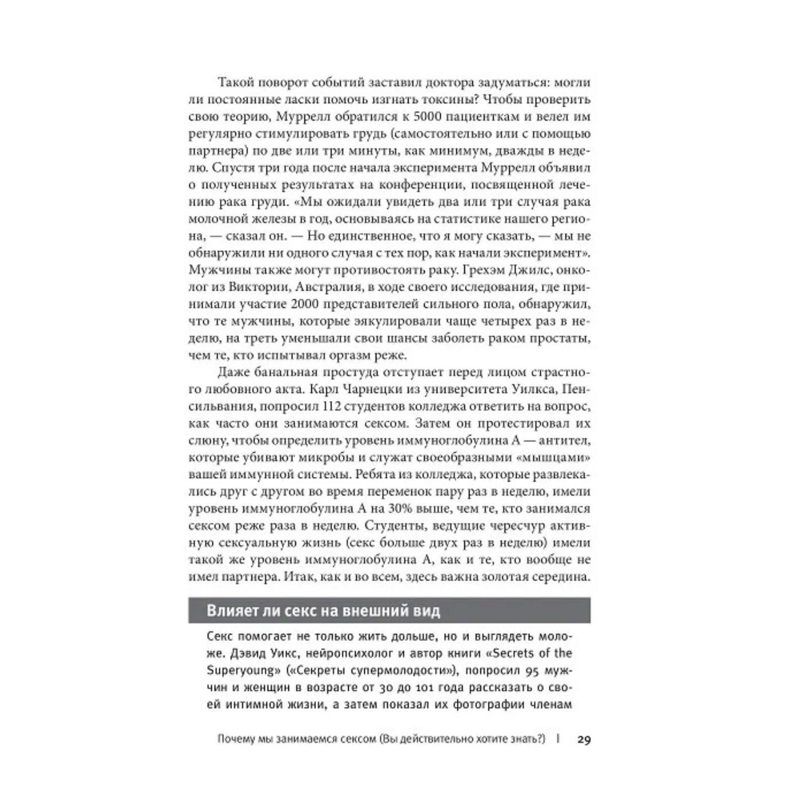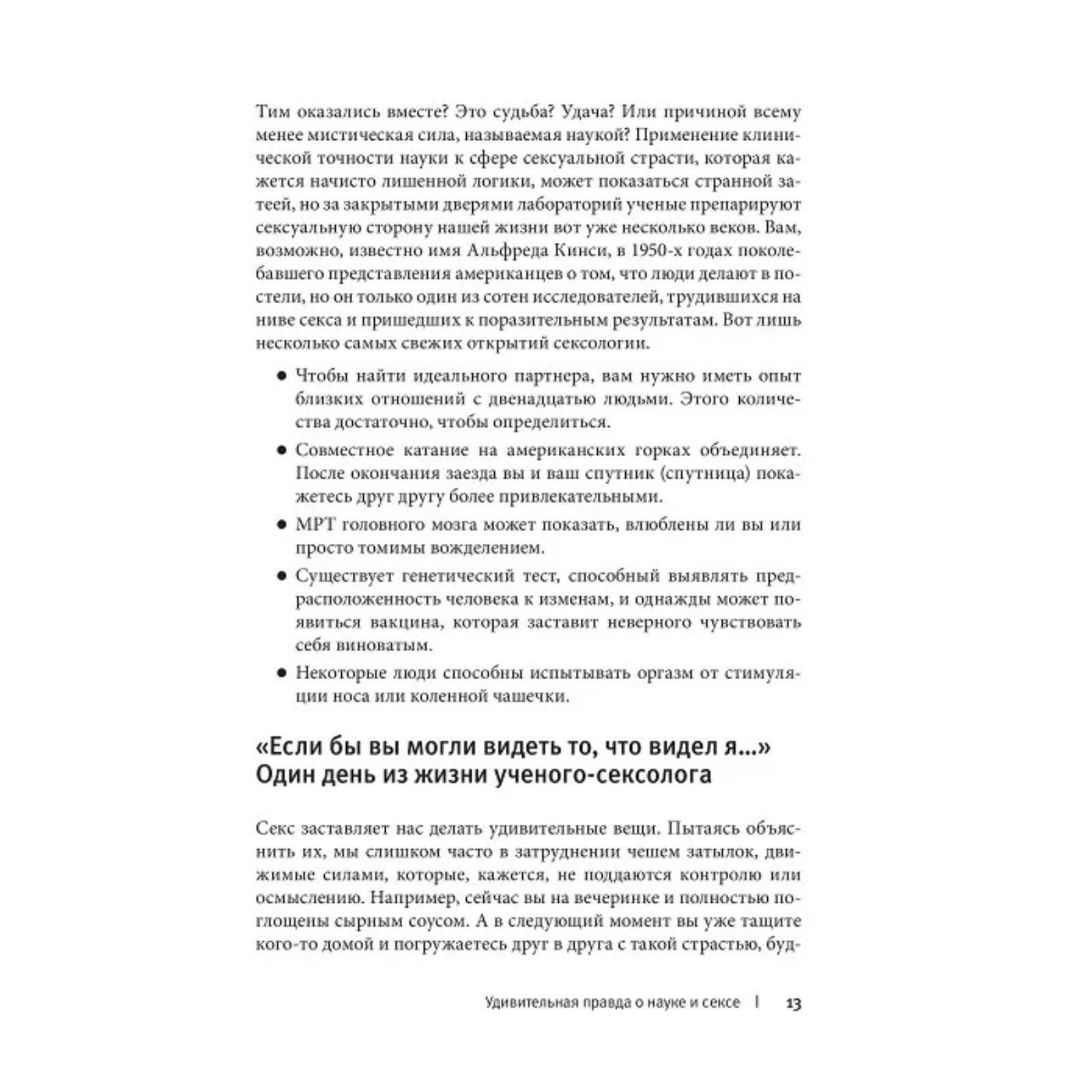 Эта книга открывает для нас двери лучших научных лабораторий мира, изучающих секс и человеческую сексуальность. Ученые, посвятившие свою жизнь исследованиям секса, буквально препарируют все стадии отношений между мужчиной и женщиной – и даже получают за это ученые степени! Эти самоотверженные люди, работающие на переднем крае науки, во всех подробностях изучают такие уголки и закоулки сексуальности, одно упоминание о которых заставляет нас краснеть. Прочитав эту книгу, вы будете вооружены огромным количеством новых идей, которые вам захочется испробовать на свидании и в постели. Вы узнаете: