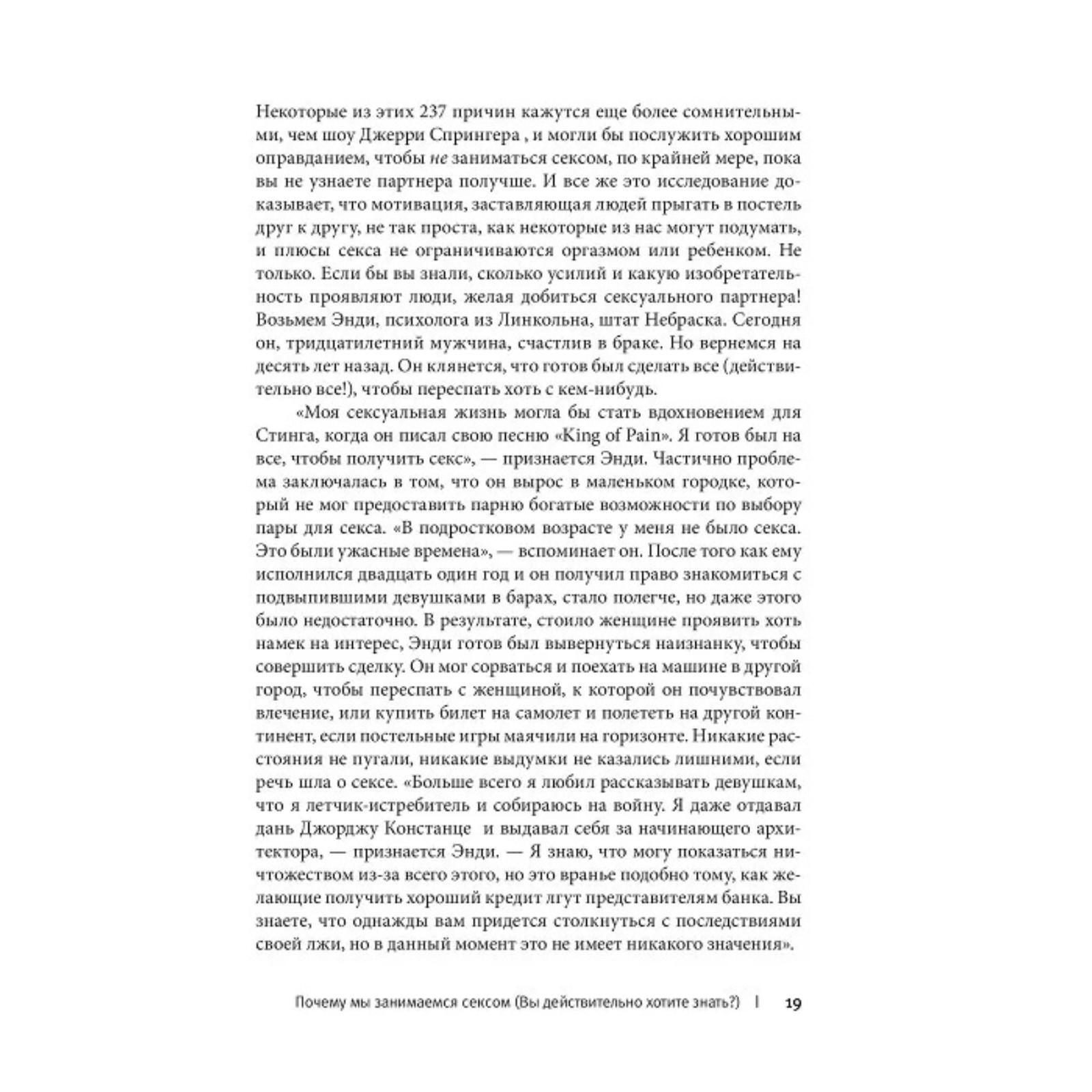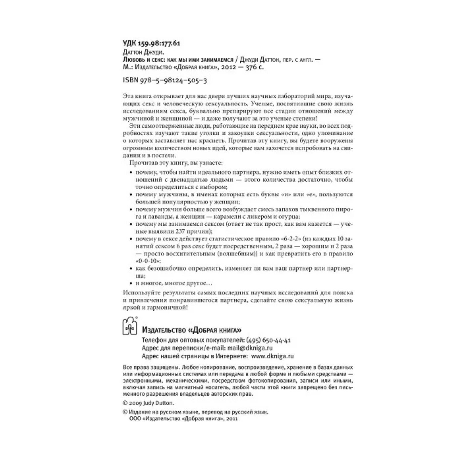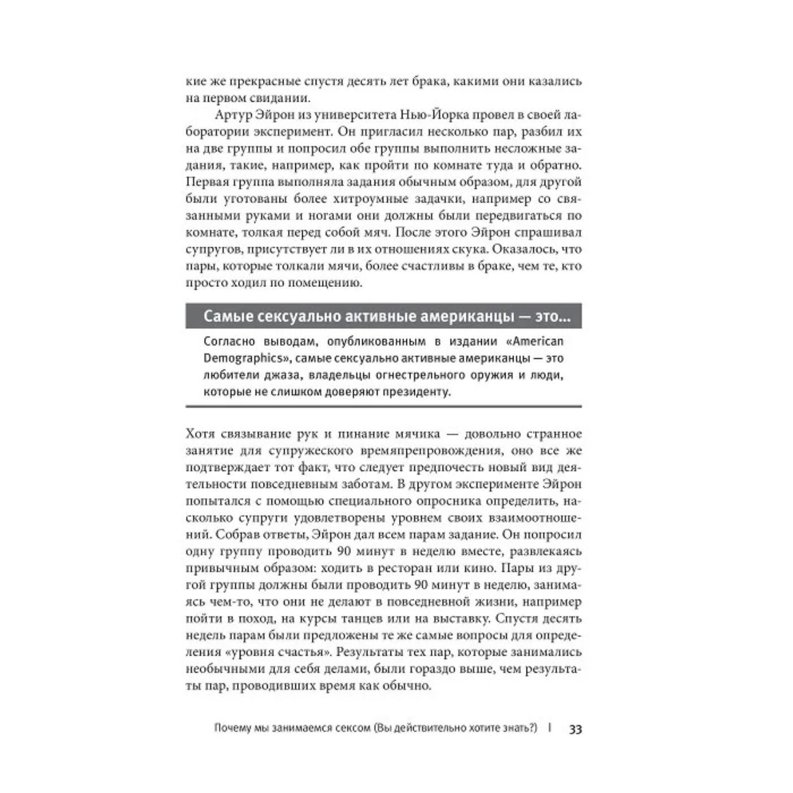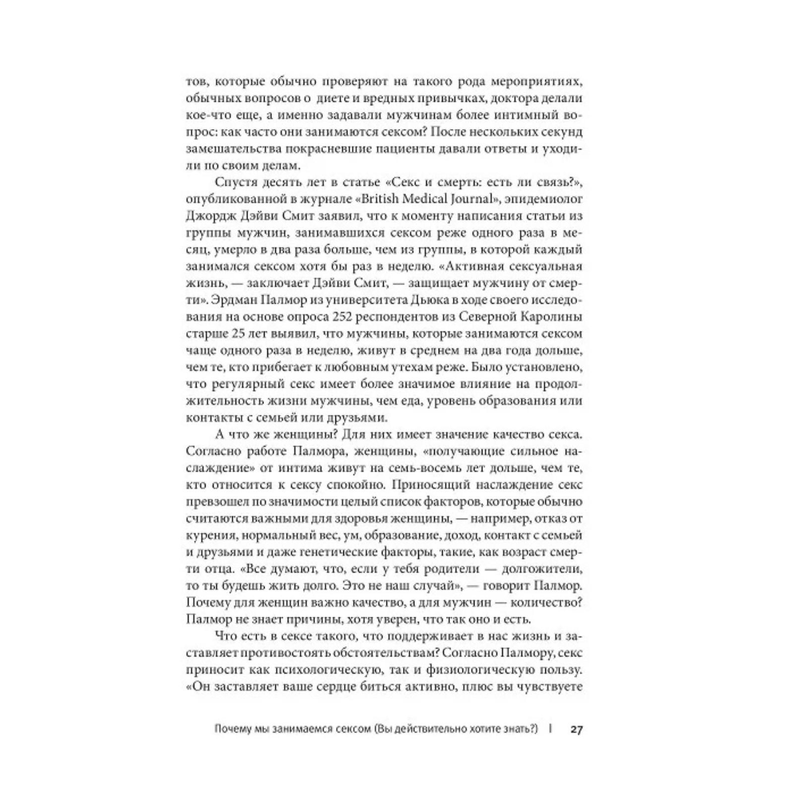 Эта книга открывает для нас двери лучших научных лабораторий мира, изучающих секс и человеческую сексуальность. Ученые, посвятившие свою жизнь исследованиям секса, буквально препарируют все стадии отношений между мужчиной и женщиной – и даже получают за это ученые степени! Эти самоотверженные люди, работающие на переднем крае науки, во всех подробностях изучают такие уголки и закоулки сексуальности, одно упоминание о которых заставляет нас краснеть. Прочитав эту книгу, вы будете вооружены огромным количеством новых идей, которые вам захочется испробовать на свидании и в постели. Вы узнаете: