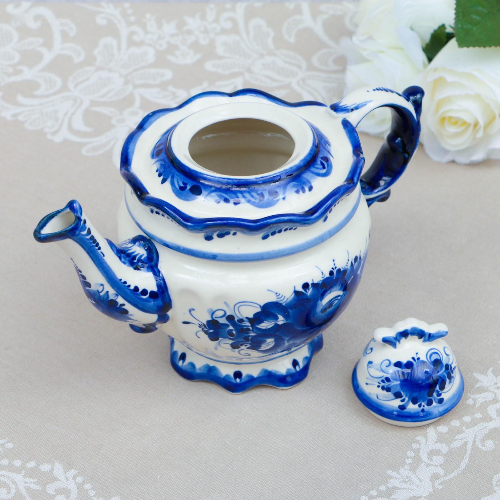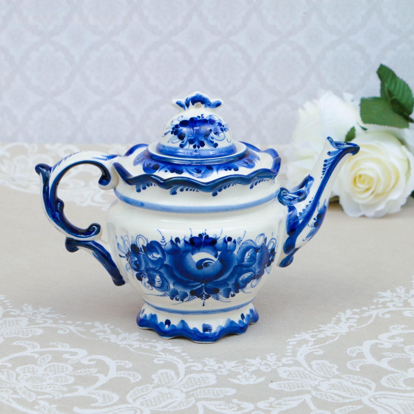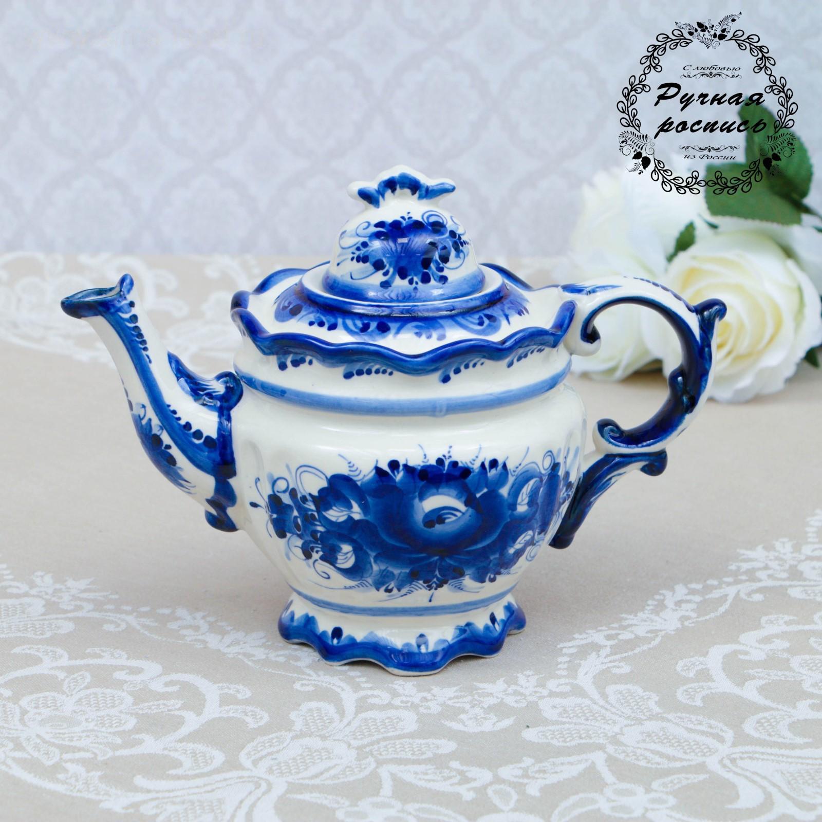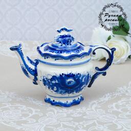 Чайник, гжель, фарфор, автор Рогова, 18х24 см