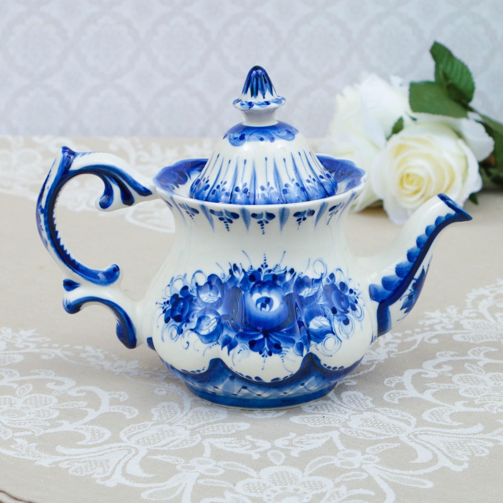 Чайник "Шатер", гжель, фарфор, 19х23 см