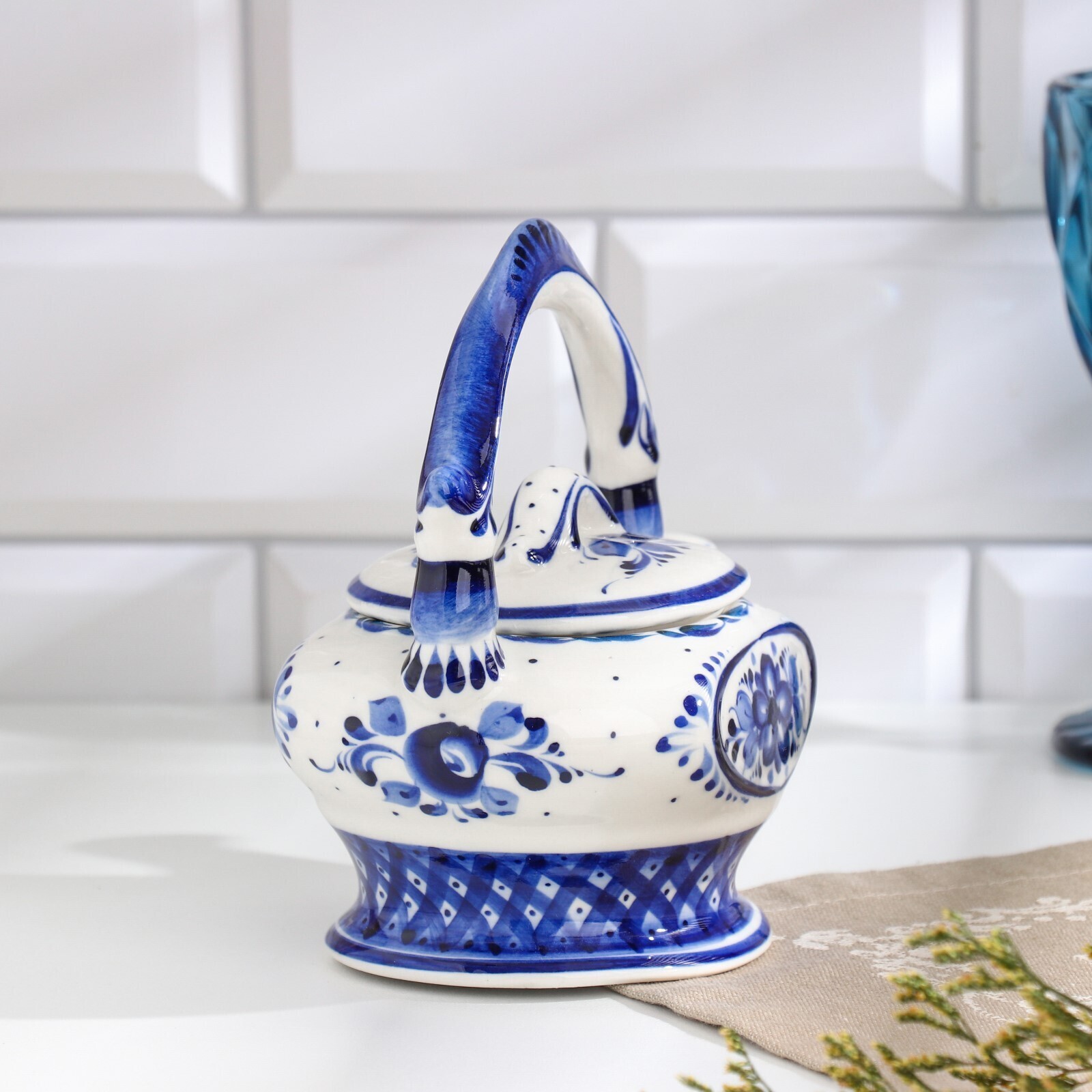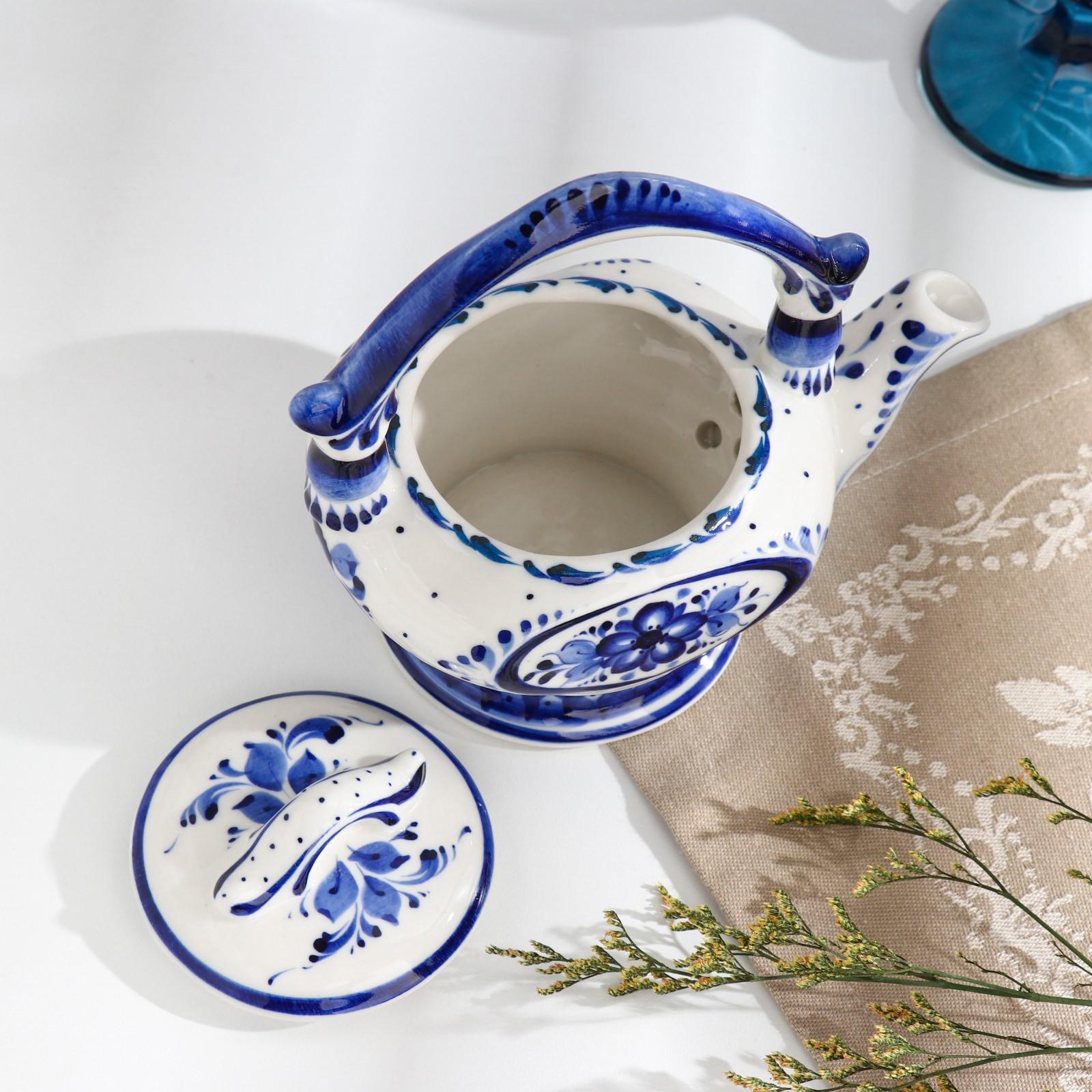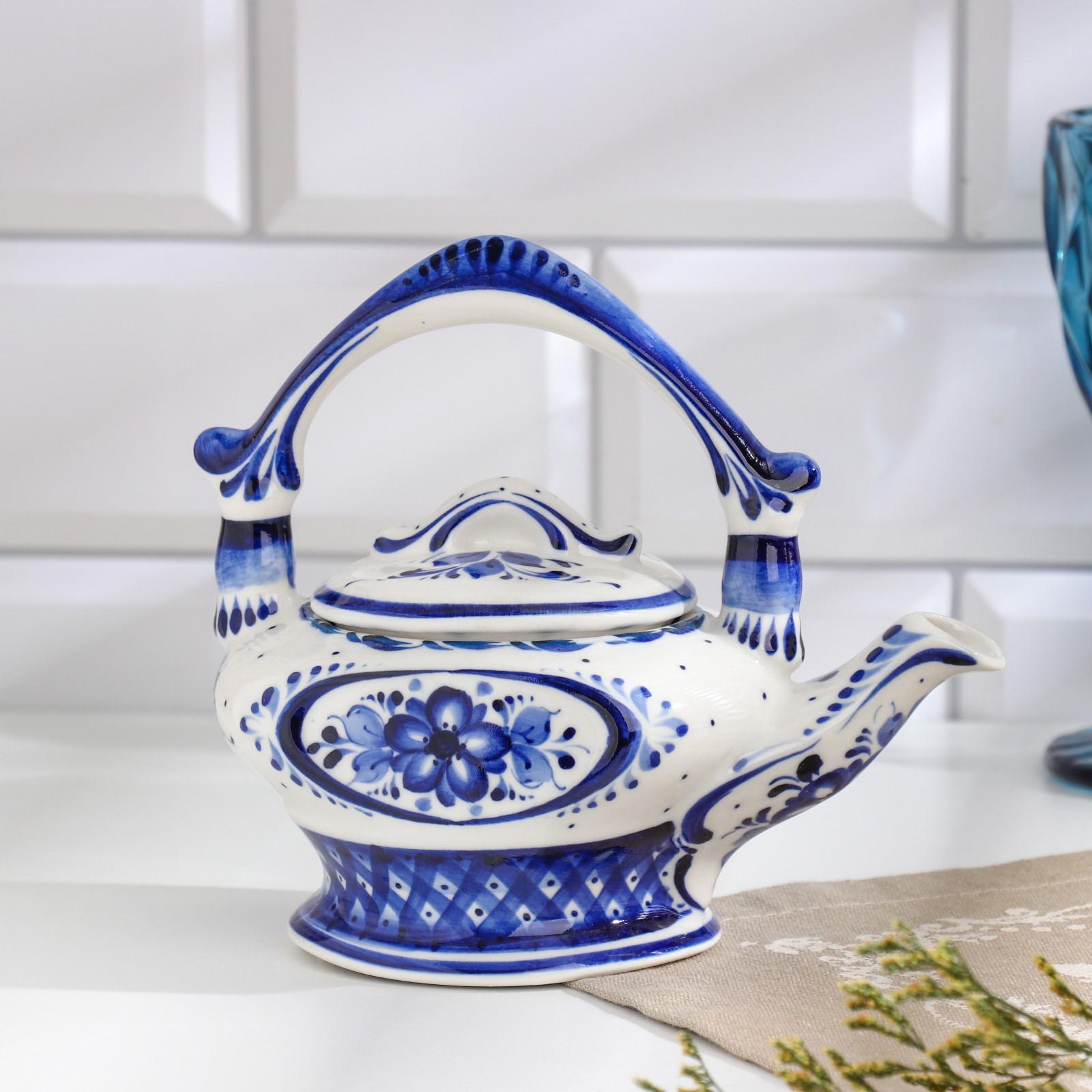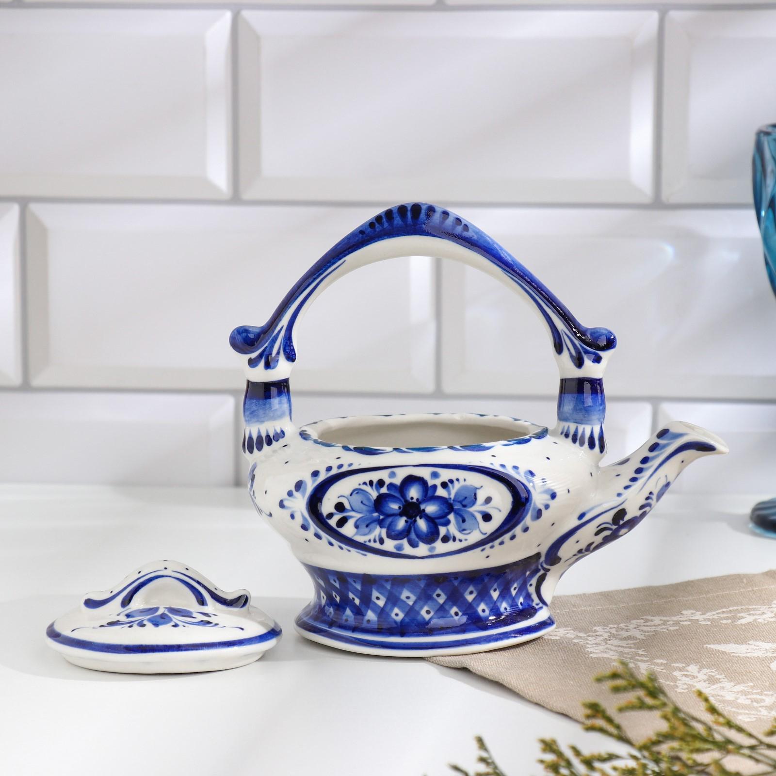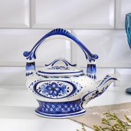 Чайник "Январь", 300 мл, худ. роспись, авт. Исаев, 15х13 см, гжель, фарфор