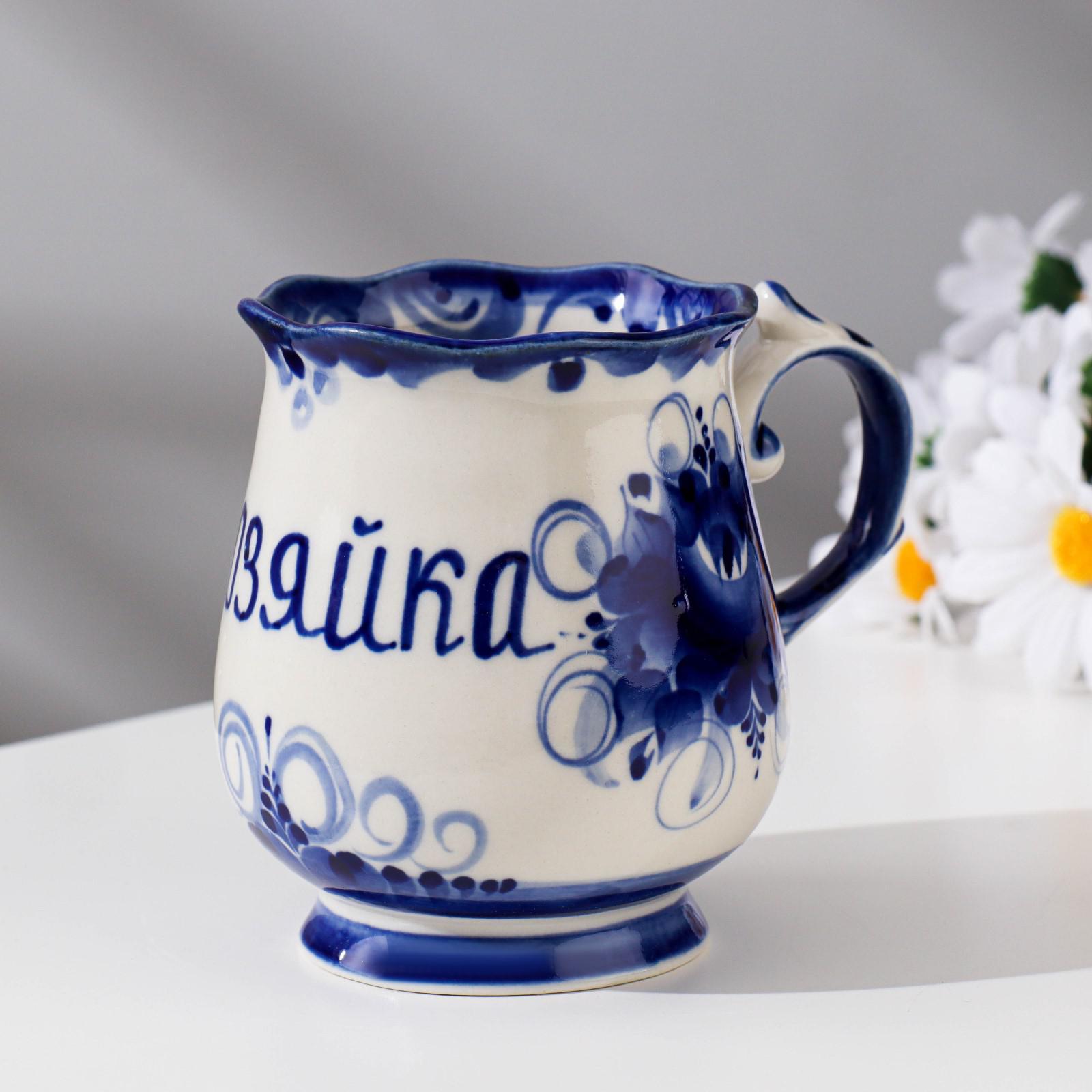Кружка "Утро Хозяйка", 0,3 л, 11х12 см, гжель, фарфор