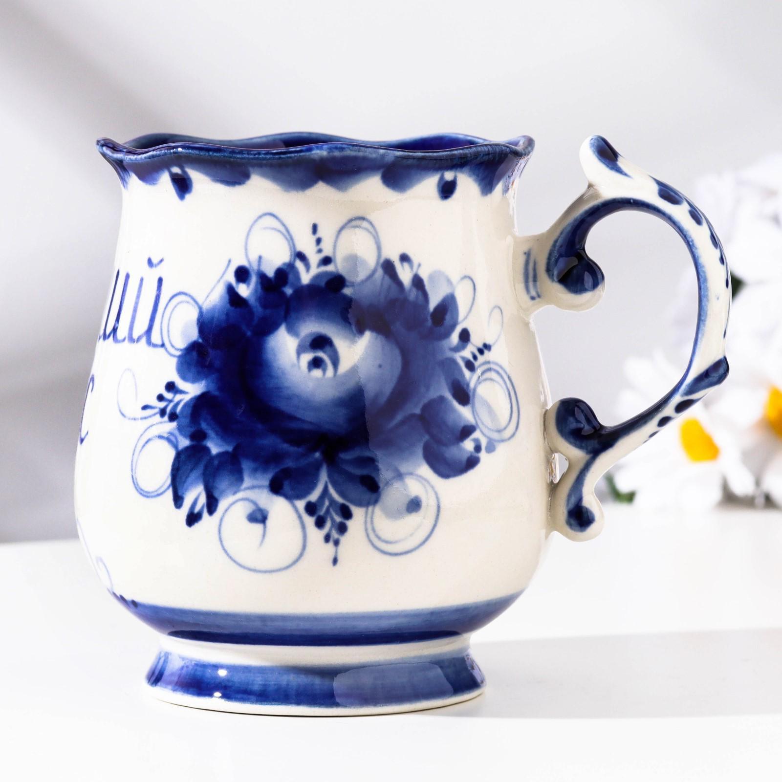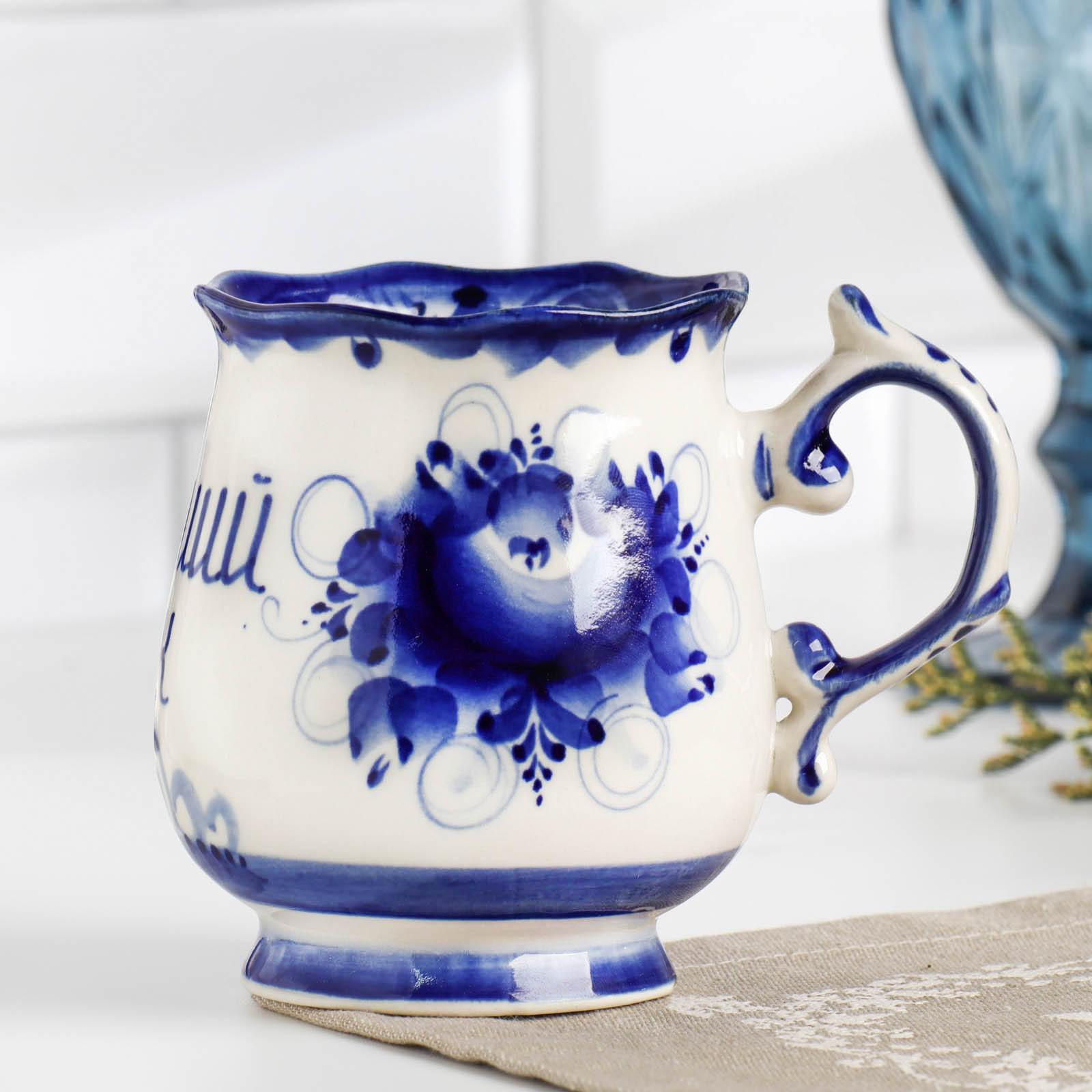 Кружка "Утро. Лучший муж", гжель, фарфор, 11х12 см