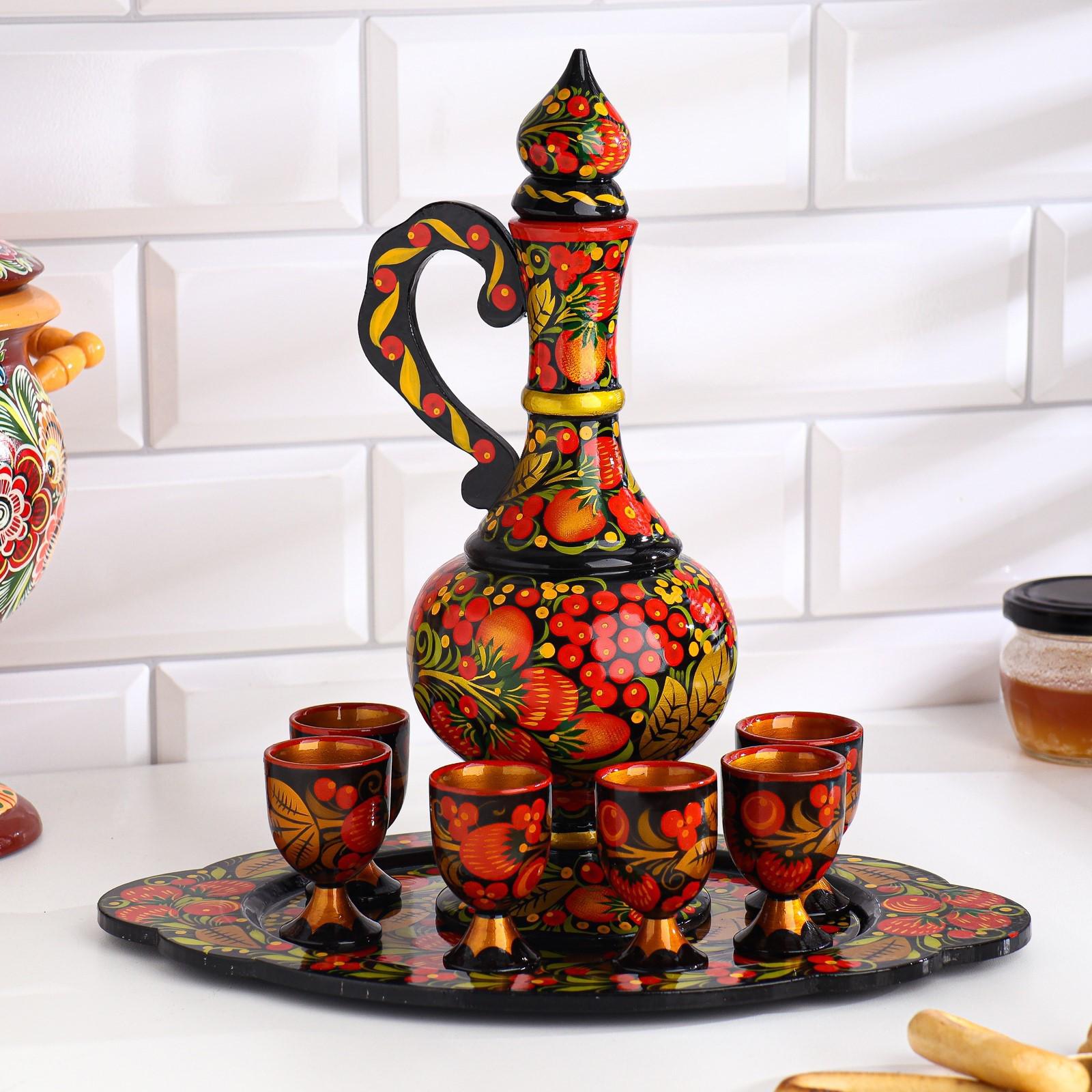Набор для вина 8пр.: поднос 30х19см, графин 400мл, рюмки 30мл, хохлома