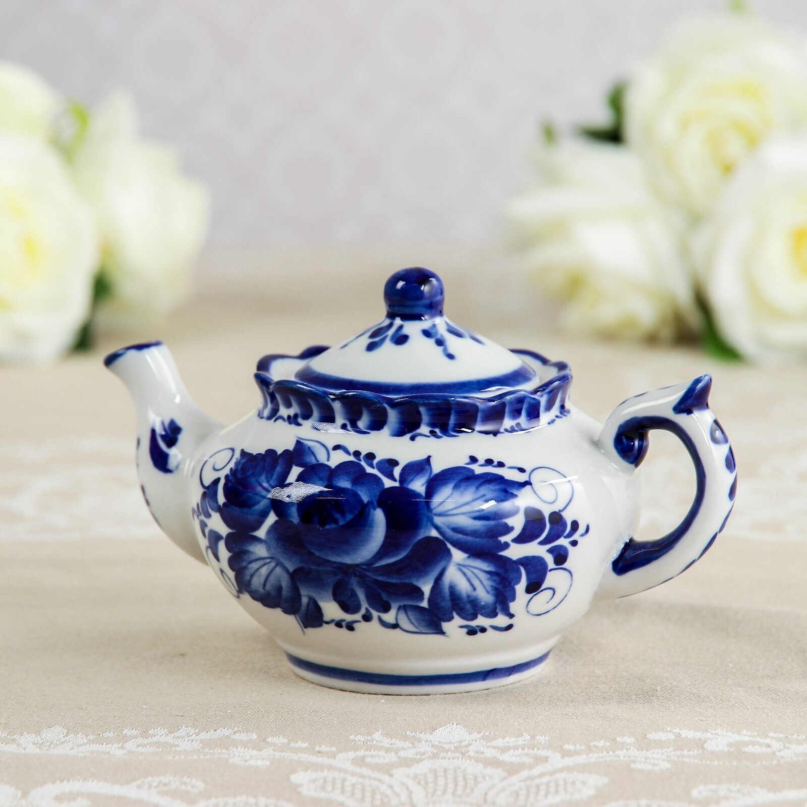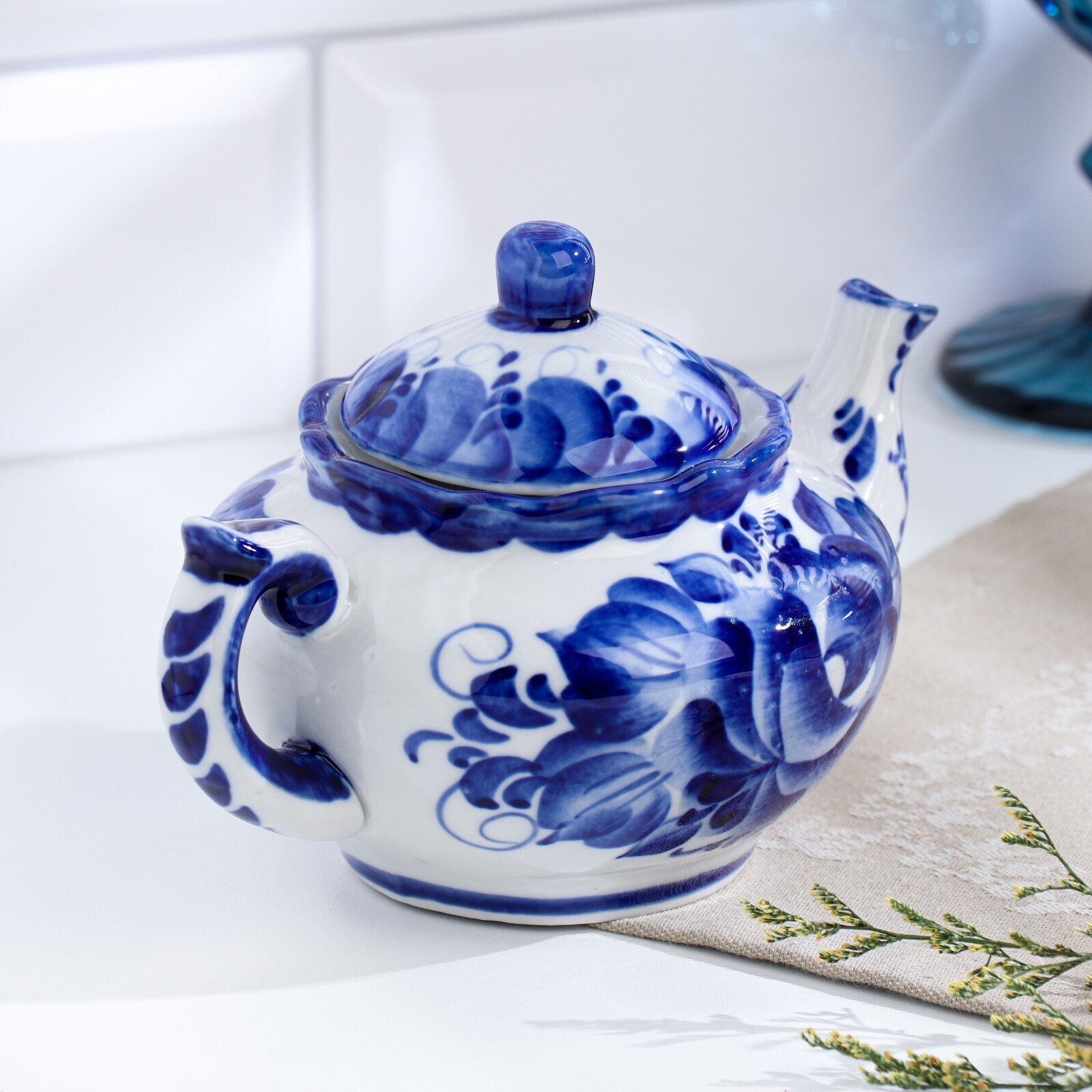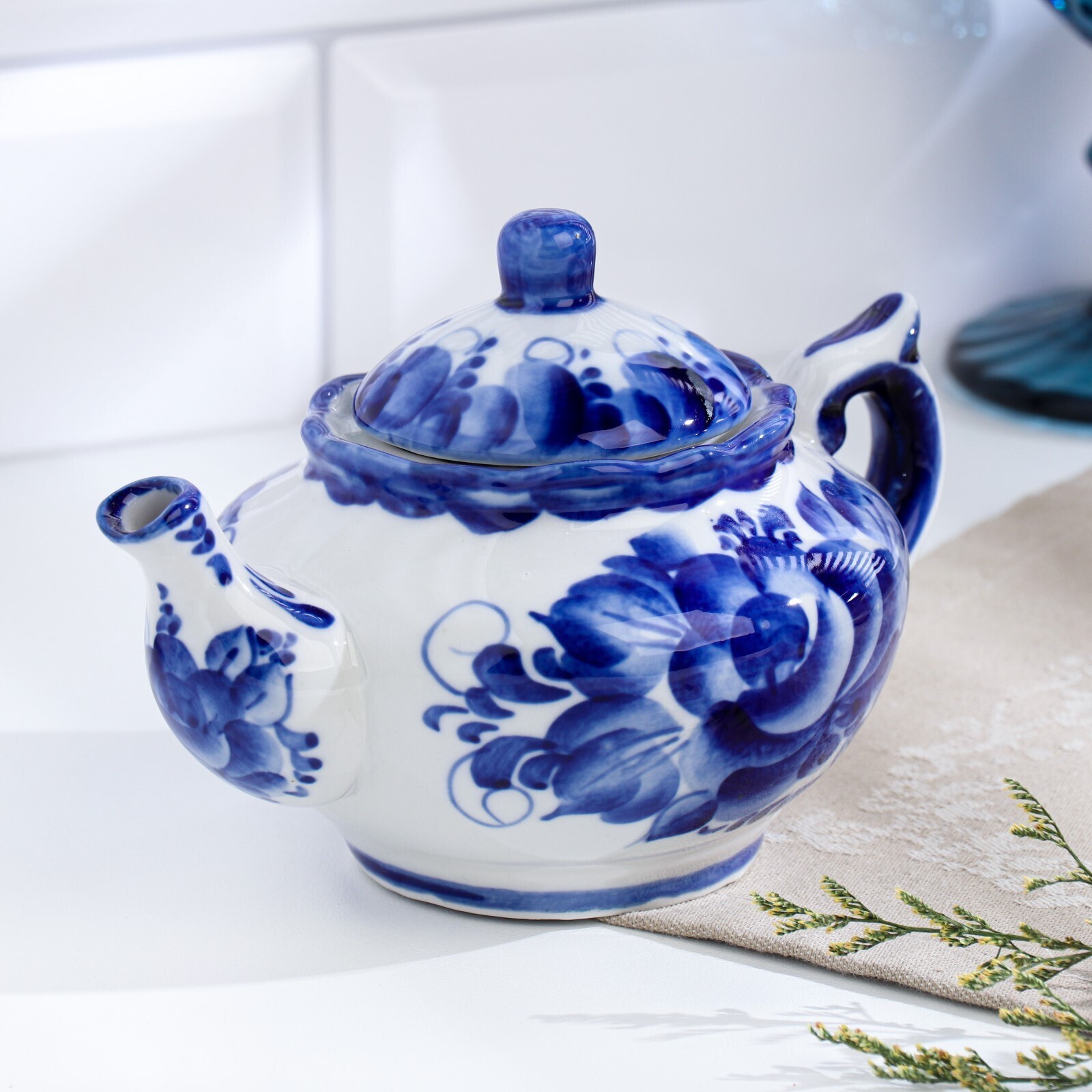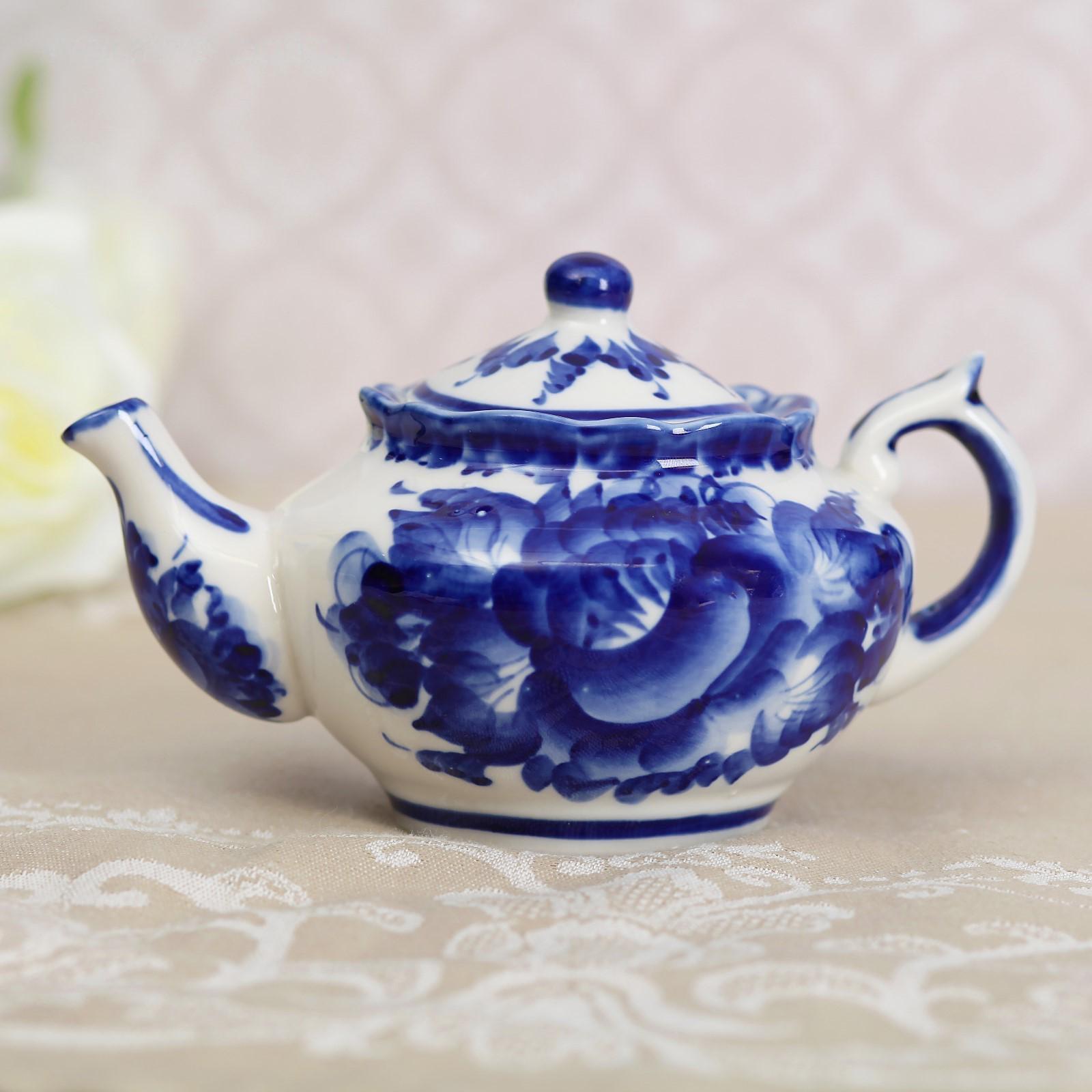 Чайник «Утро», 16×16×9 см, 300 мл, гжель