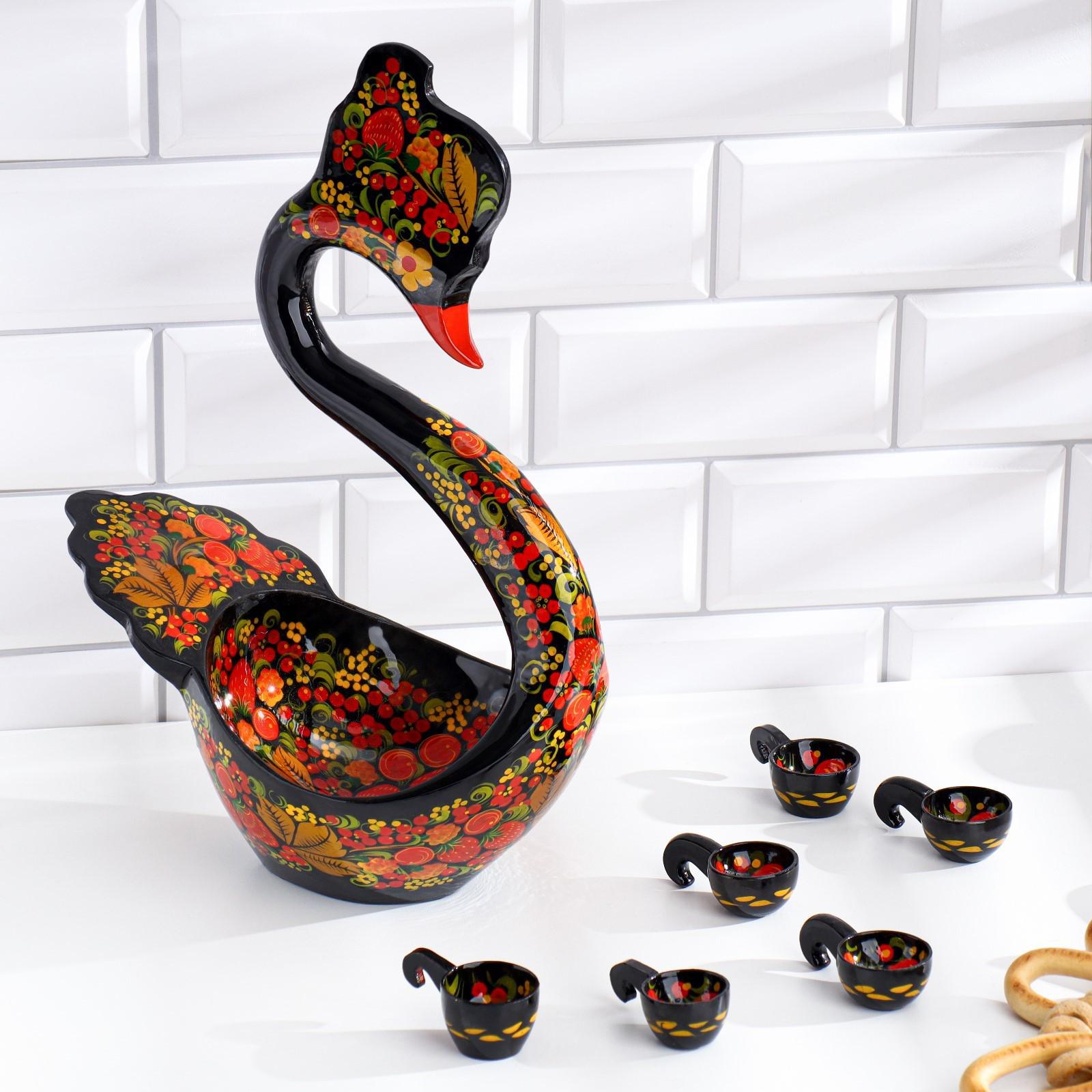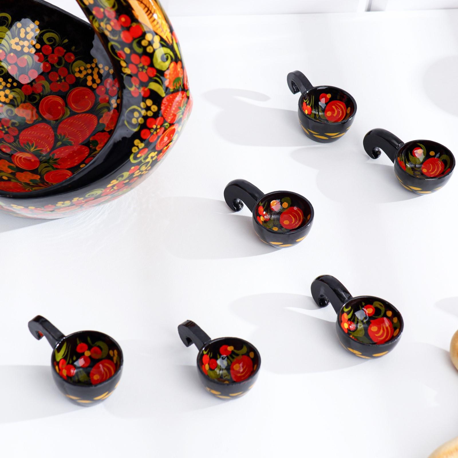 Братина «Лебедь», 29×13,5×21 см, с ковшами 6 шт, хохлома