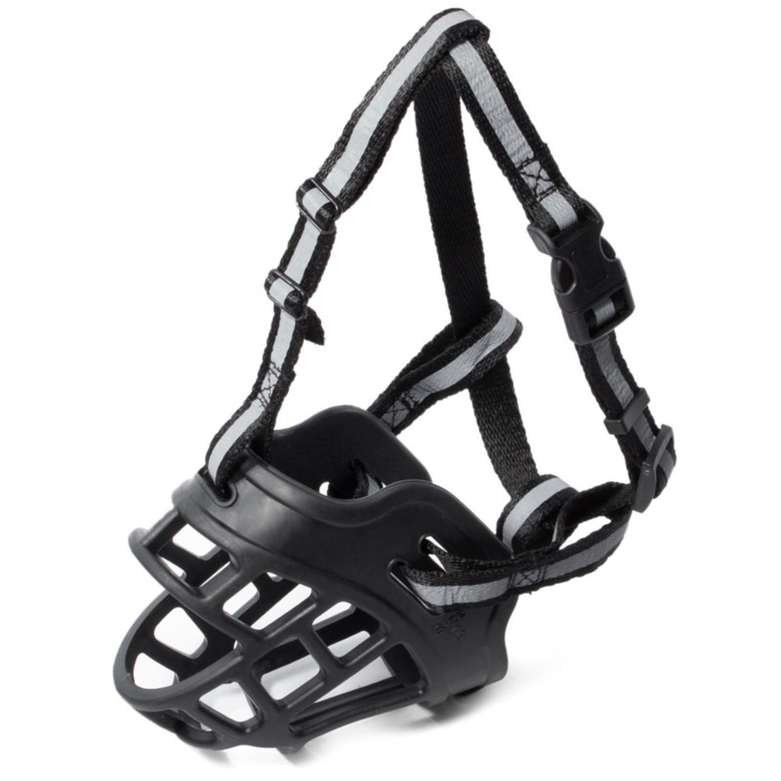 Силиконовый намордник изготовлен из прочного, но эластичного материала, что обеспечивает эргономичную посадку по форме морды и удобство питомца. В таком наморднике собака сможет свободно дышать с приоткрытой пастью, пить воду и есть лакомства на прогулке. Дополнительное крепление намордника на голове не позволит самостоятельно снять изделие даже активной собаке. Длина ремней на шее и голове регулируется. Светоотражающие полоски на ремешках сделают прогулку в темное время суток безопаснее. Цвет изделия: черный.