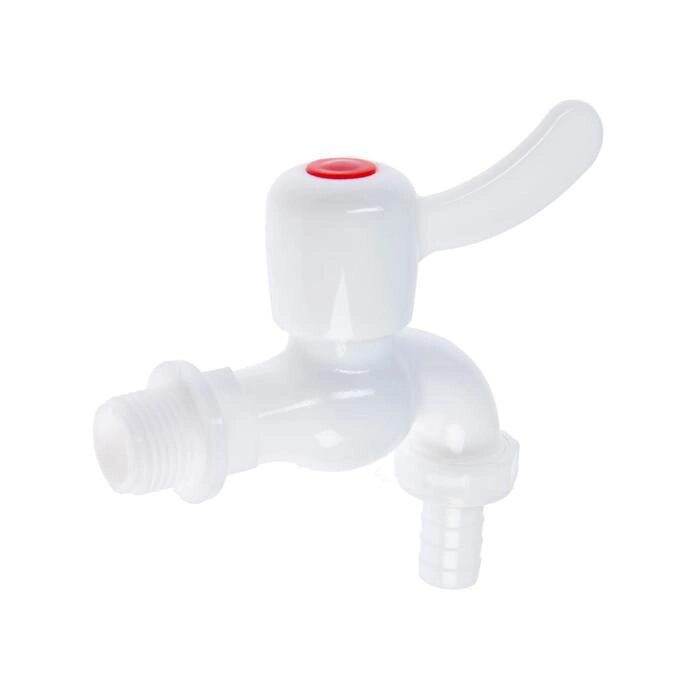 Кран водоразборный со штуцером ZEIN, с плоской ручкой, PP, с шаровым механизмом, белый