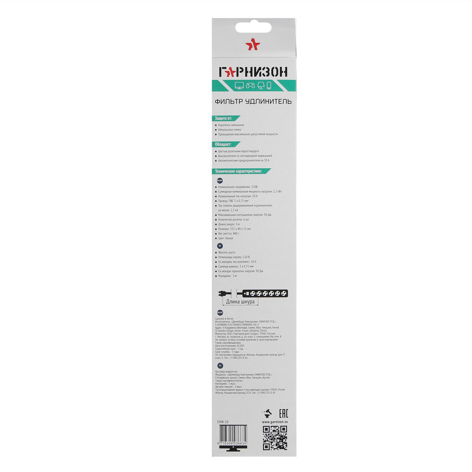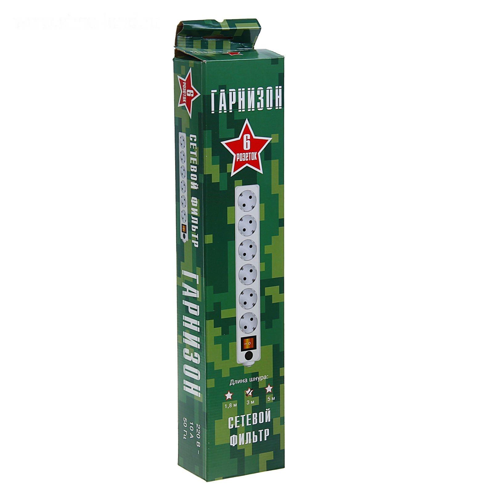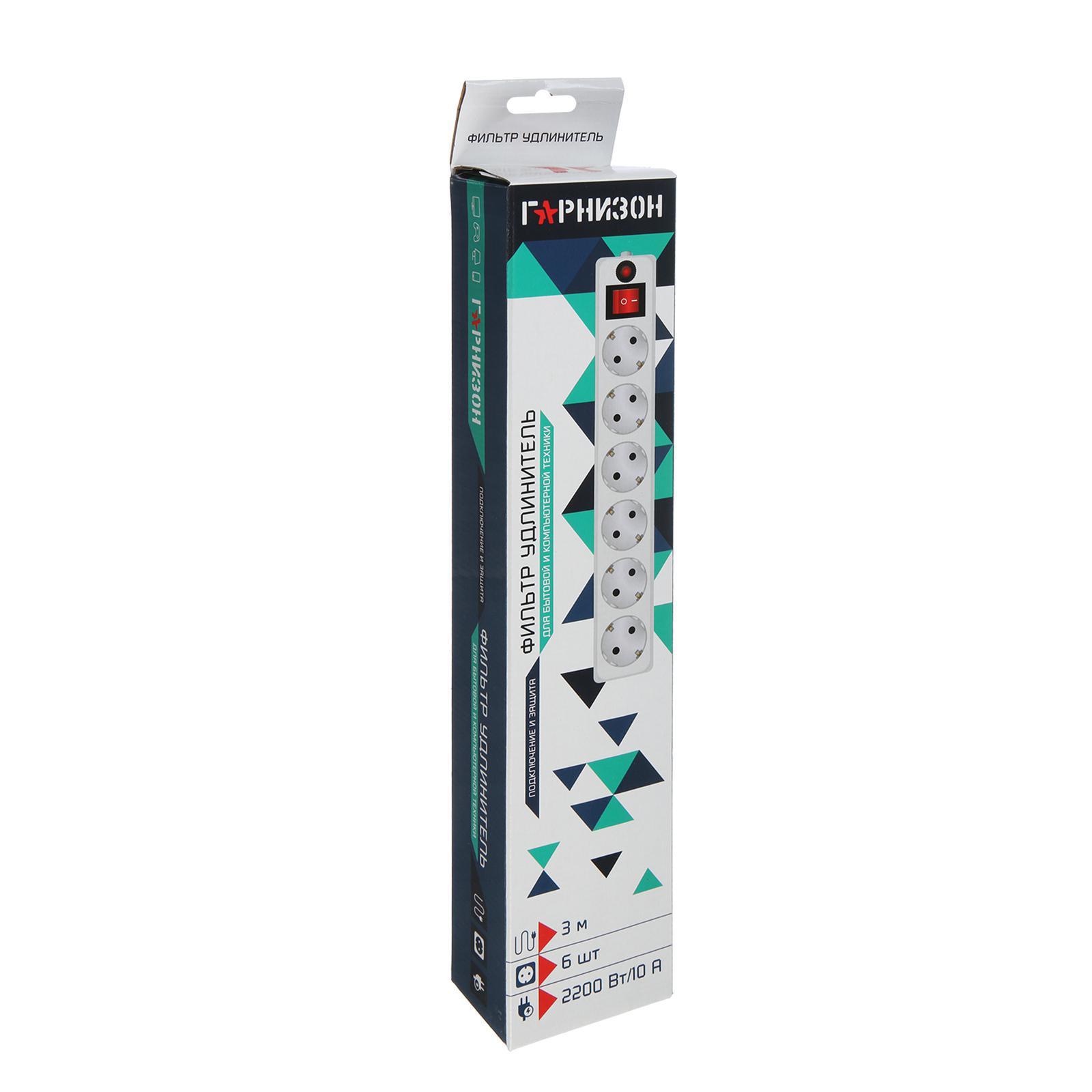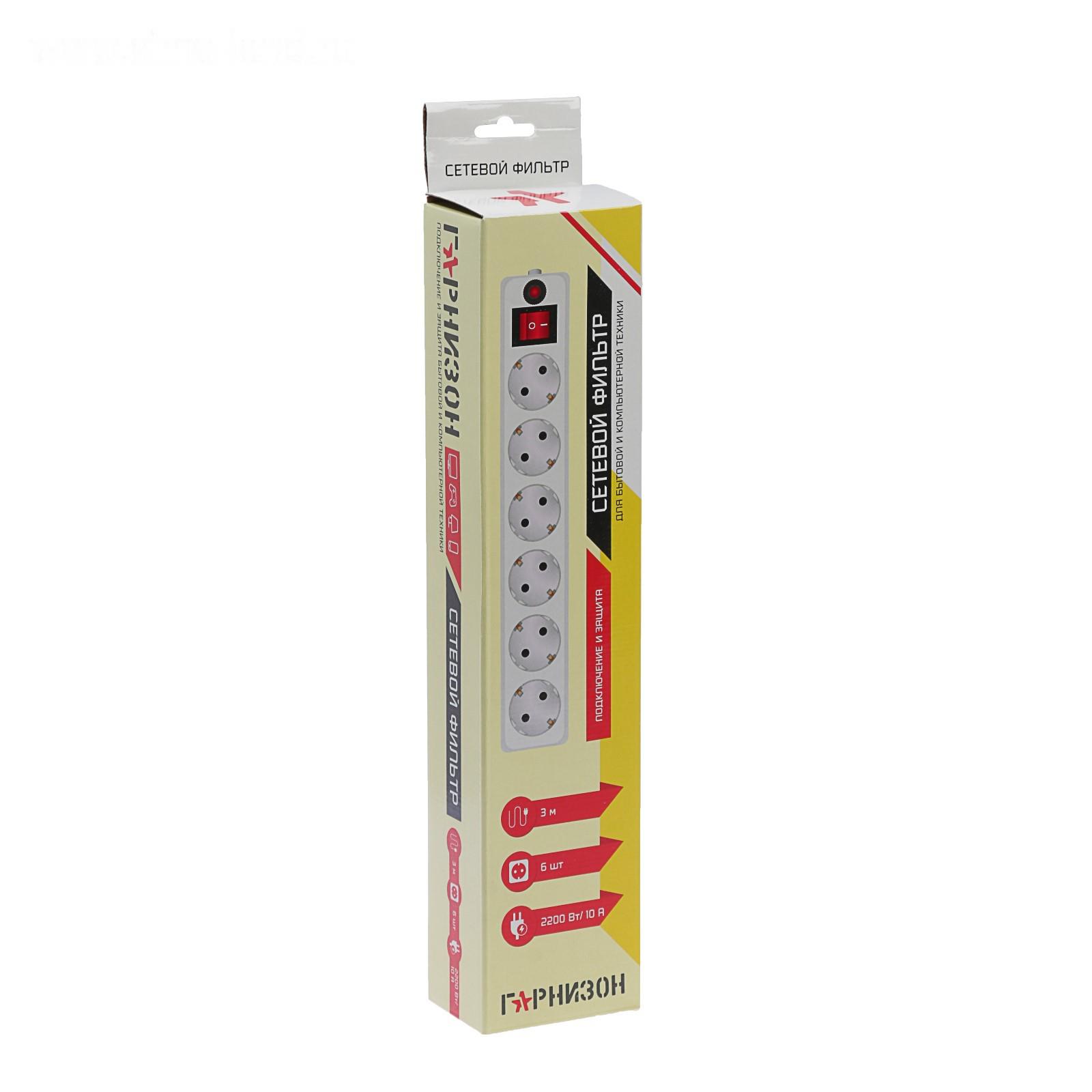 Сетевой фильтр "Гарнизон", 6 розеток, 3 м, 10 А, 2200 Вт, белый