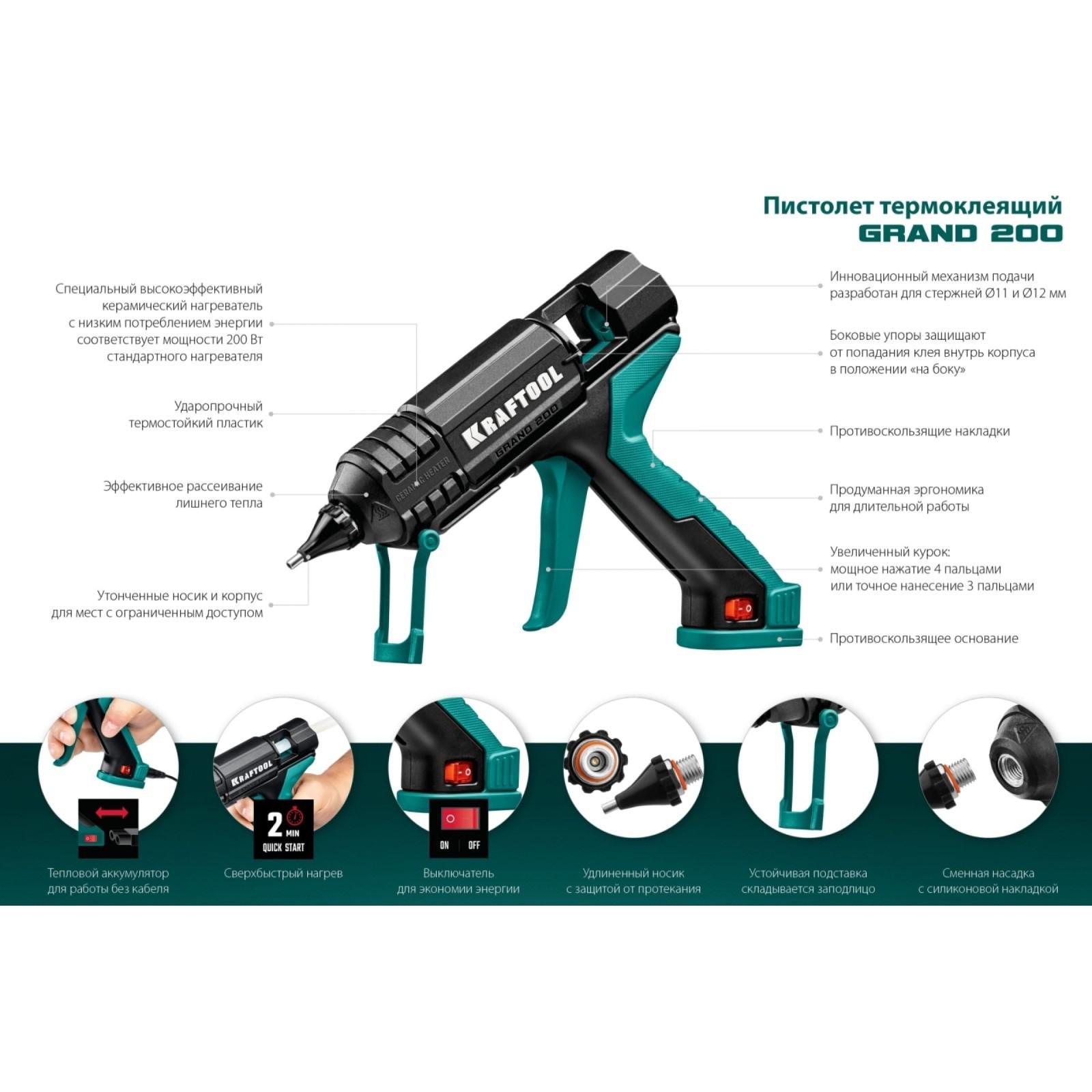 Клеевой пистолет электрический KRAFTOOL Grand 200, d 11-12 мм 25 г/мин
