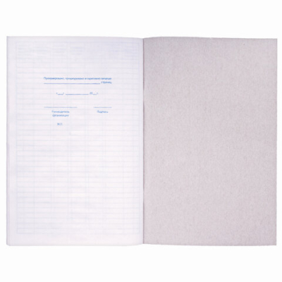 Обложка выполнена из мелованного картона плотностью 200 г/м2. Вертикальная ориентация. Внутренний блок содержит 48 листов офсетной белой бумаги плотностью 60 г/м2. Формат А4 (200х290 мм).