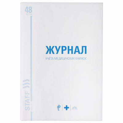 Журнал учёта медицинских книжек, 48 л., А4 200х290 мм, картон, офсет, STAFF, 130247