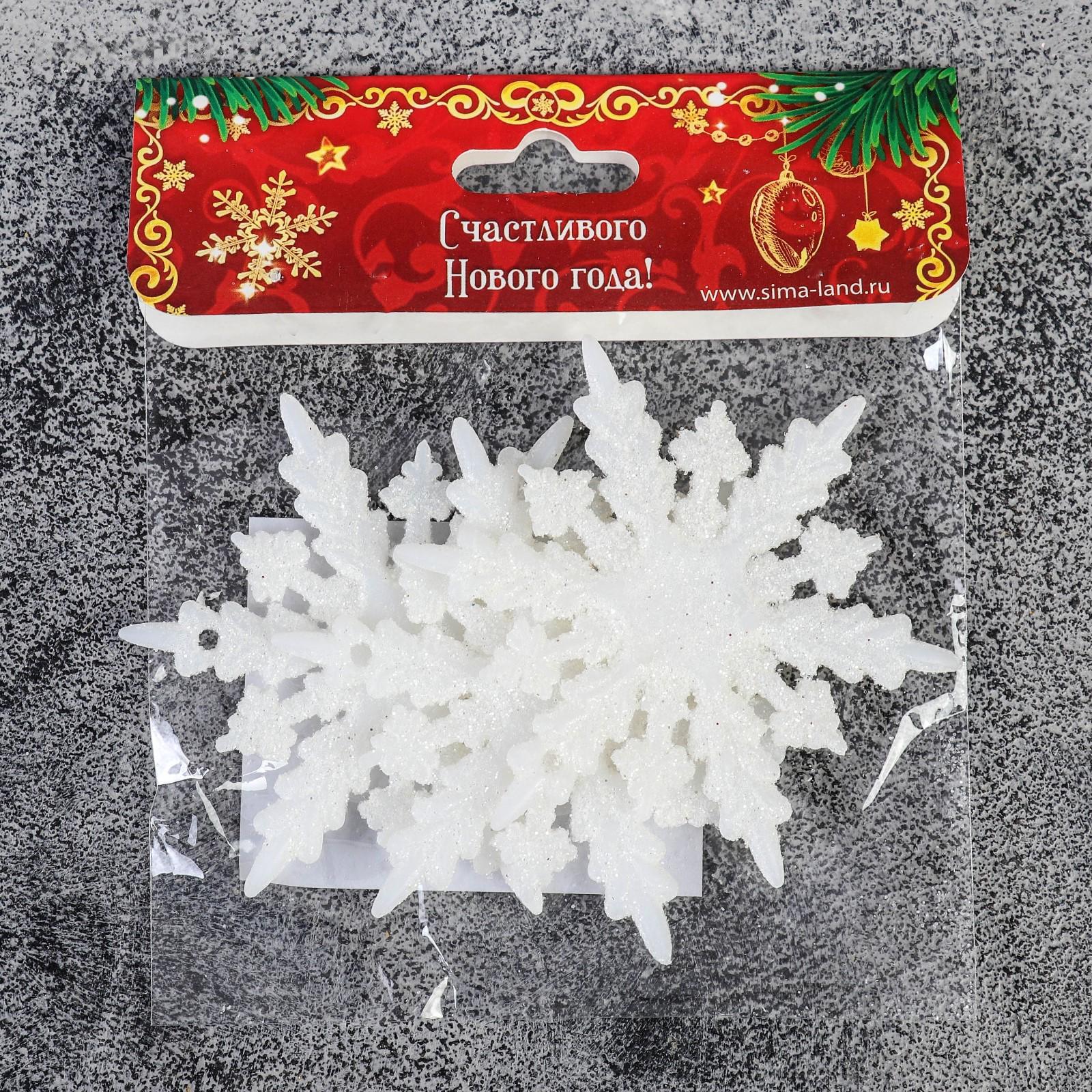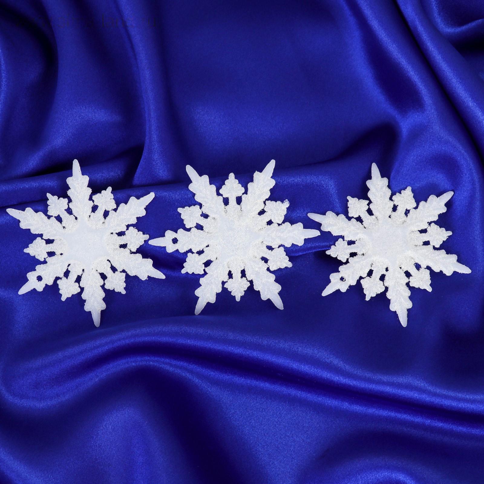 Украшение ёлочное "Снежинка - морозный блеск" (набор 3 шт) d-6 см, белый