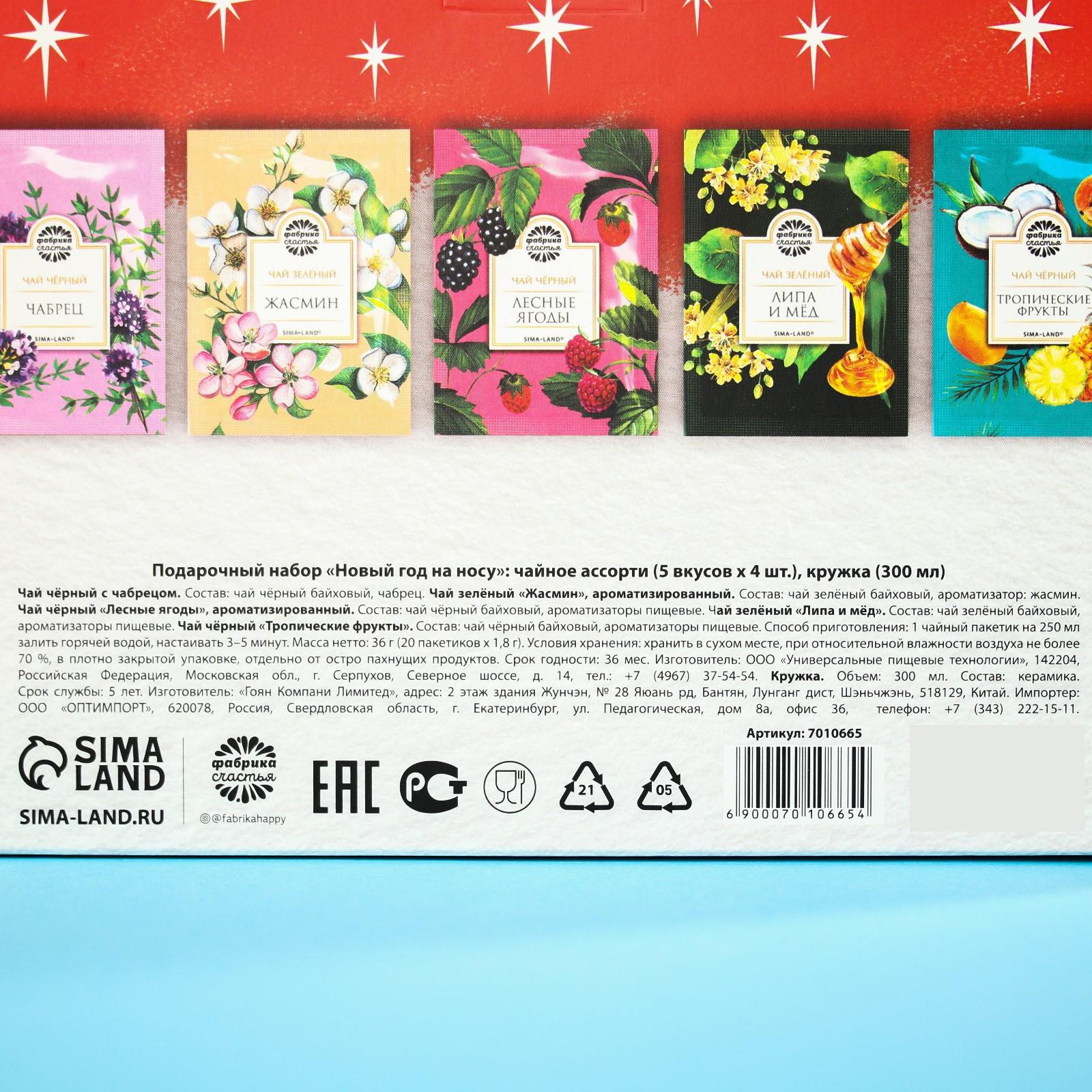Подарочный набор «Новый год на носу»: чайное ассорти 5 вкусов x 4 шт., кружка, 300 мл.