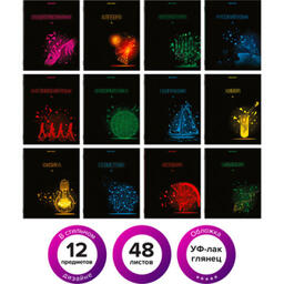 Тетради предметные, КОМПЛЕКТ 12 ПРЕДМЕТОВ, "DARK", 48 листов, глянцевый УФ-лак, BRAUBERG, 404028