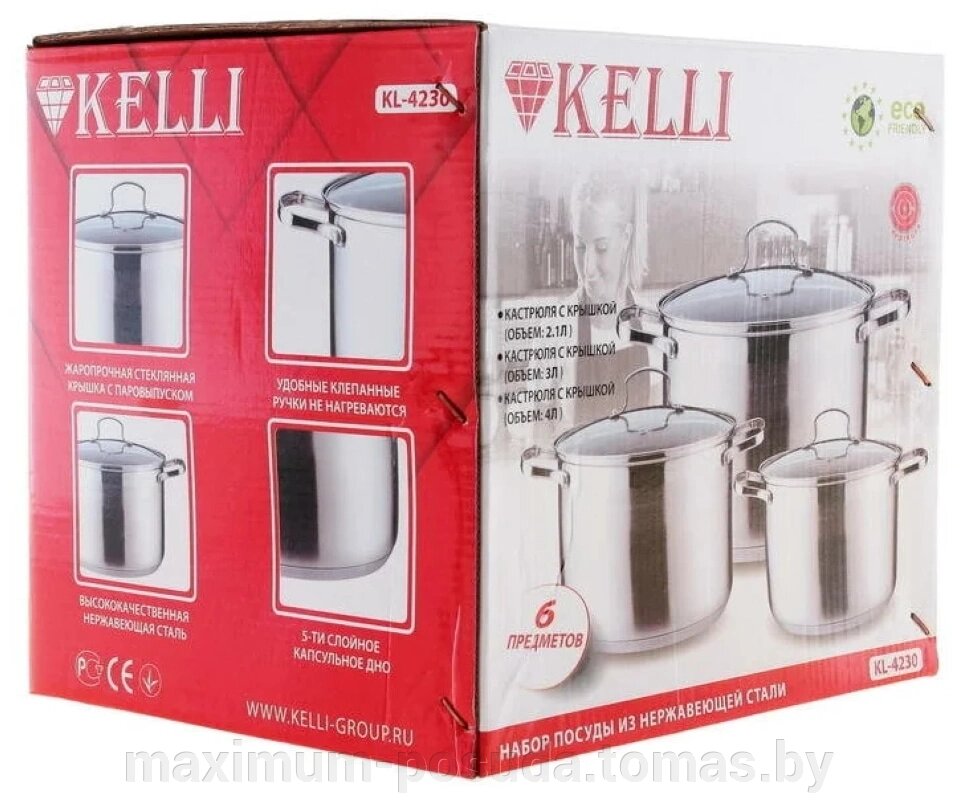 Набор посуды из нержавеющей стали Kelli (6 предметов) KL-4230