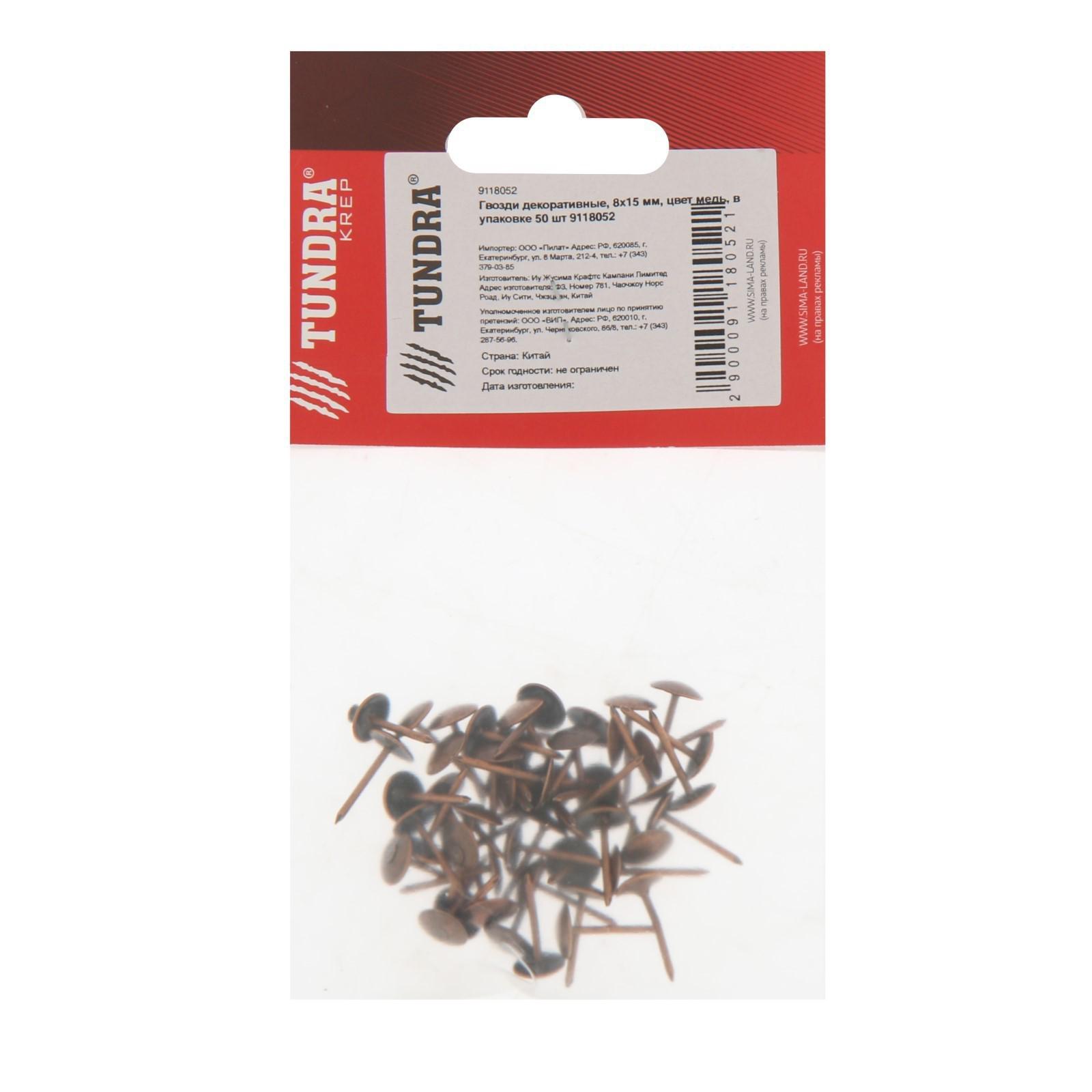 Гвозди декоративные, 8х15 мм, цвет медь, в упаковке 50 шт