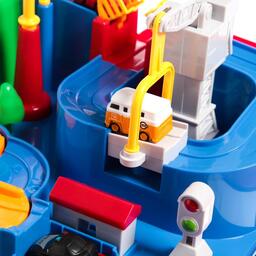 Помогите машинкам пройти интересный лабиринт! Нажимайте на кнопки, поворачивайте рычаги, проходите препятствия и достигайте финиша. Прокатите машинку по конвейеру, переместите её с помощью грузового вертолёта и подъёмного крана и соедините мост, чтобы наладить движение.