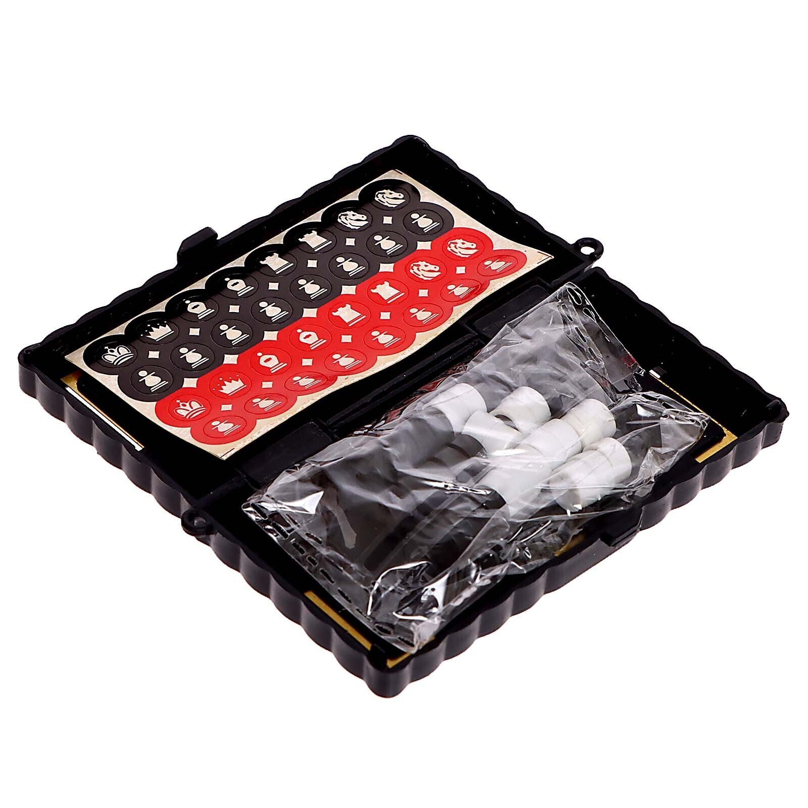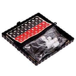 Этот игровой набор идеально подойдёт для путешественников и ценителей классических игр, потому что внутри сразу две любимые игры: шашки и шахматы. Пластиковая коробка удобная и компактная, в ней удобно хранить все фишки.