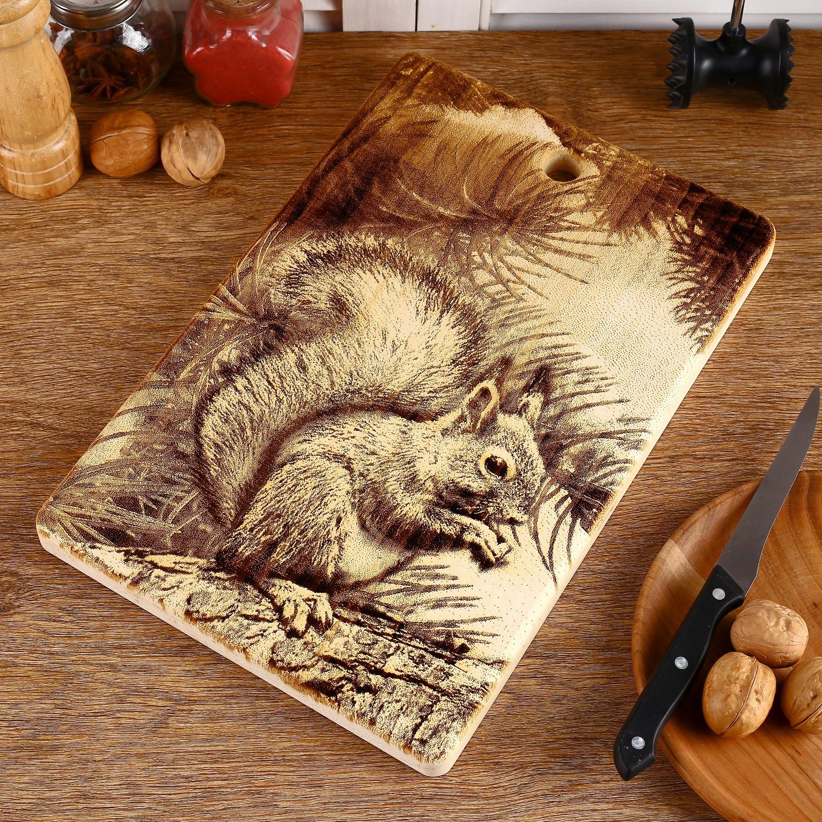 Доска из массива кедра «Белка с орешками», большая, прямоугольная, 23 × 35 см