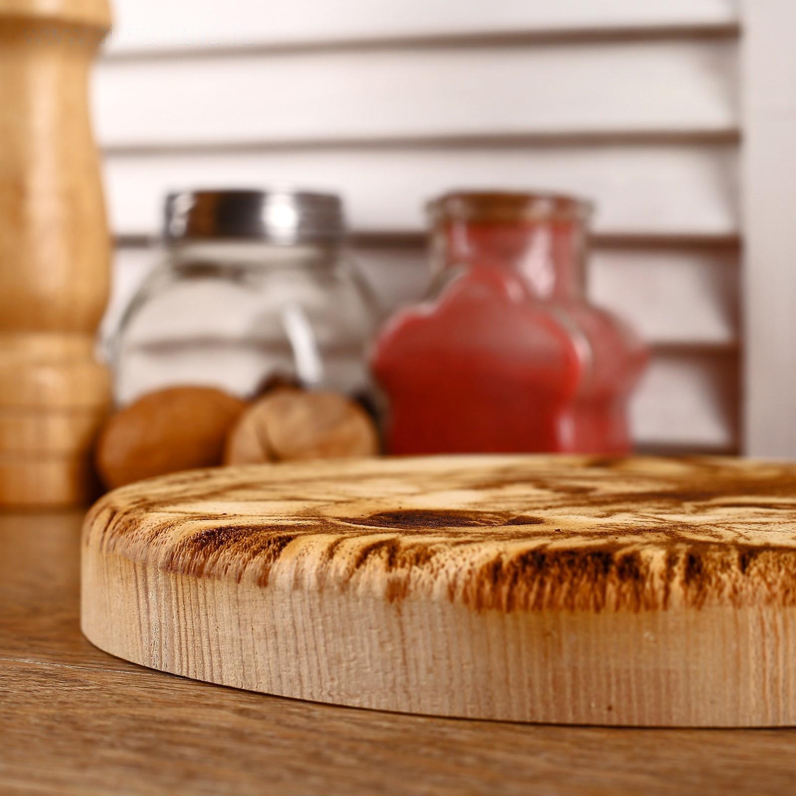 Доска из массива кедра «Волк», круглая, 18 × 18 см №240