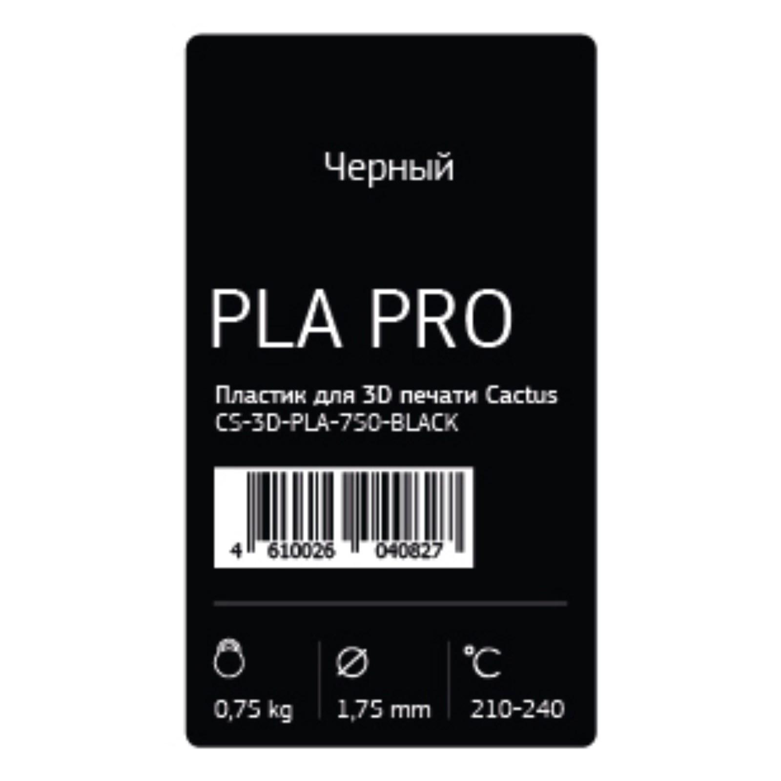 Пластик для 3D принтера Cactus (CS-3D-PLA-750-BLACK), PLA Pro, диаметр 1.75, 0.75 кг, черный 93766