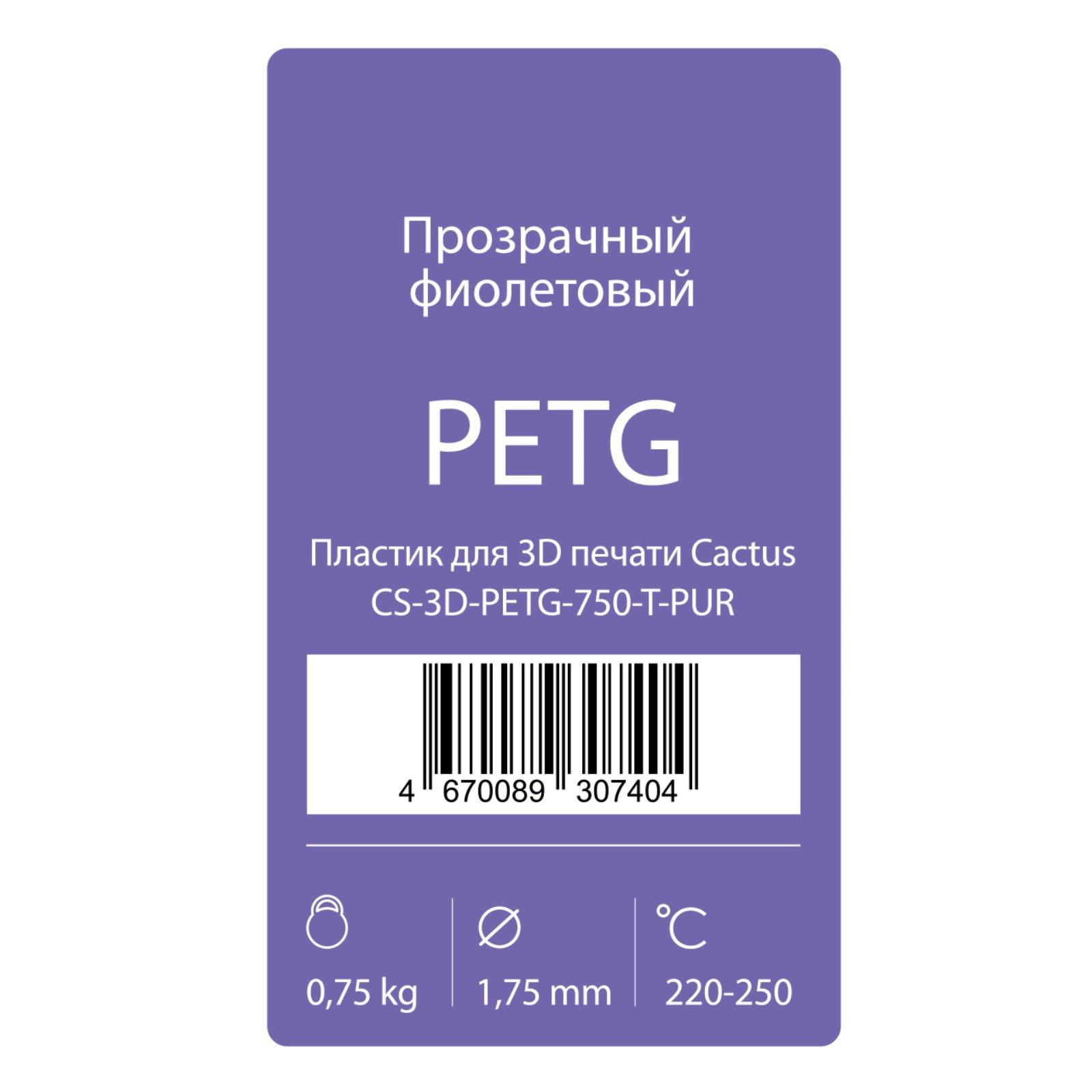 Пластик для 3D принтера Cactus (CS-3D-PETG-750-T-PUR), PETG, 0.75кг, прозрачный фиолетовый