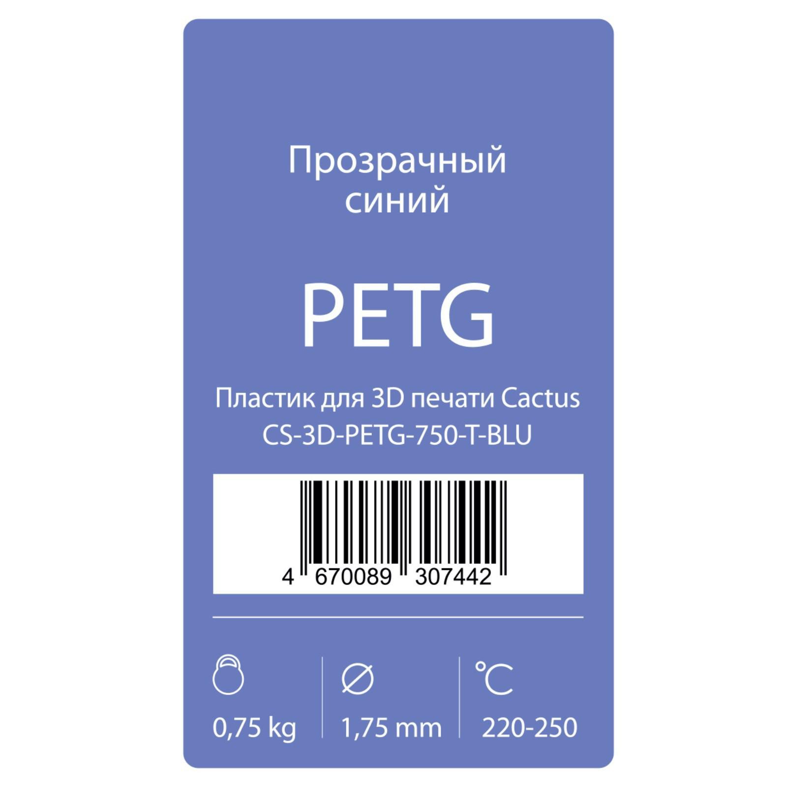 Пластик для 3D принтера Cactus (CS-3D-PETG-750-T-BLU), PETG, 1.75, 0.75 кг, прозрачный синий 93766