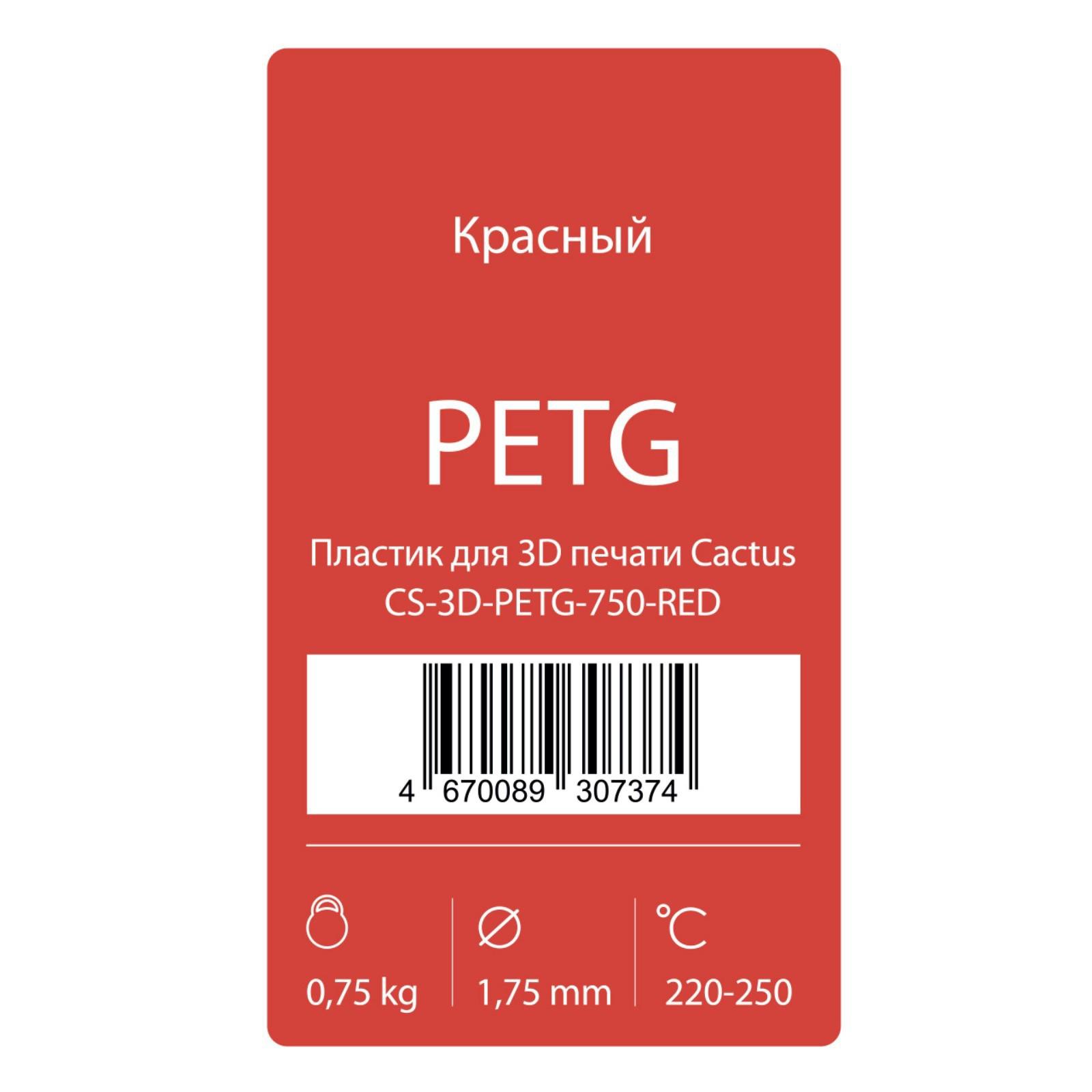 Пластик для 3D принтера Cactus (CS-3D-PETG-750-RED), PETG, диаметр 1.75, 0.75 кг, красный