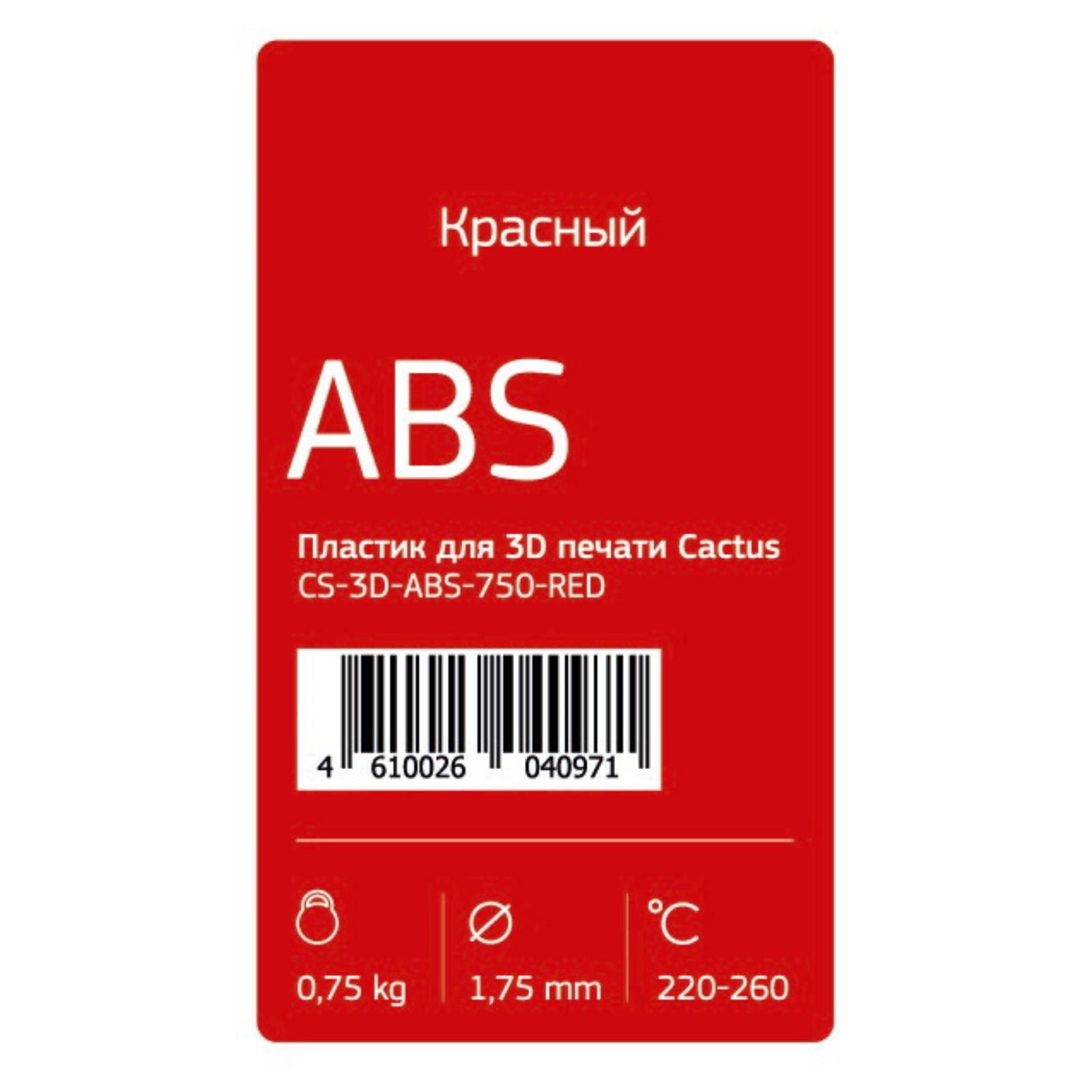 Пластик для 3D принтера Cactus (CS-3D-ABS-750-RED), ABS, диаметр 1.75, 0.75 кг, красный