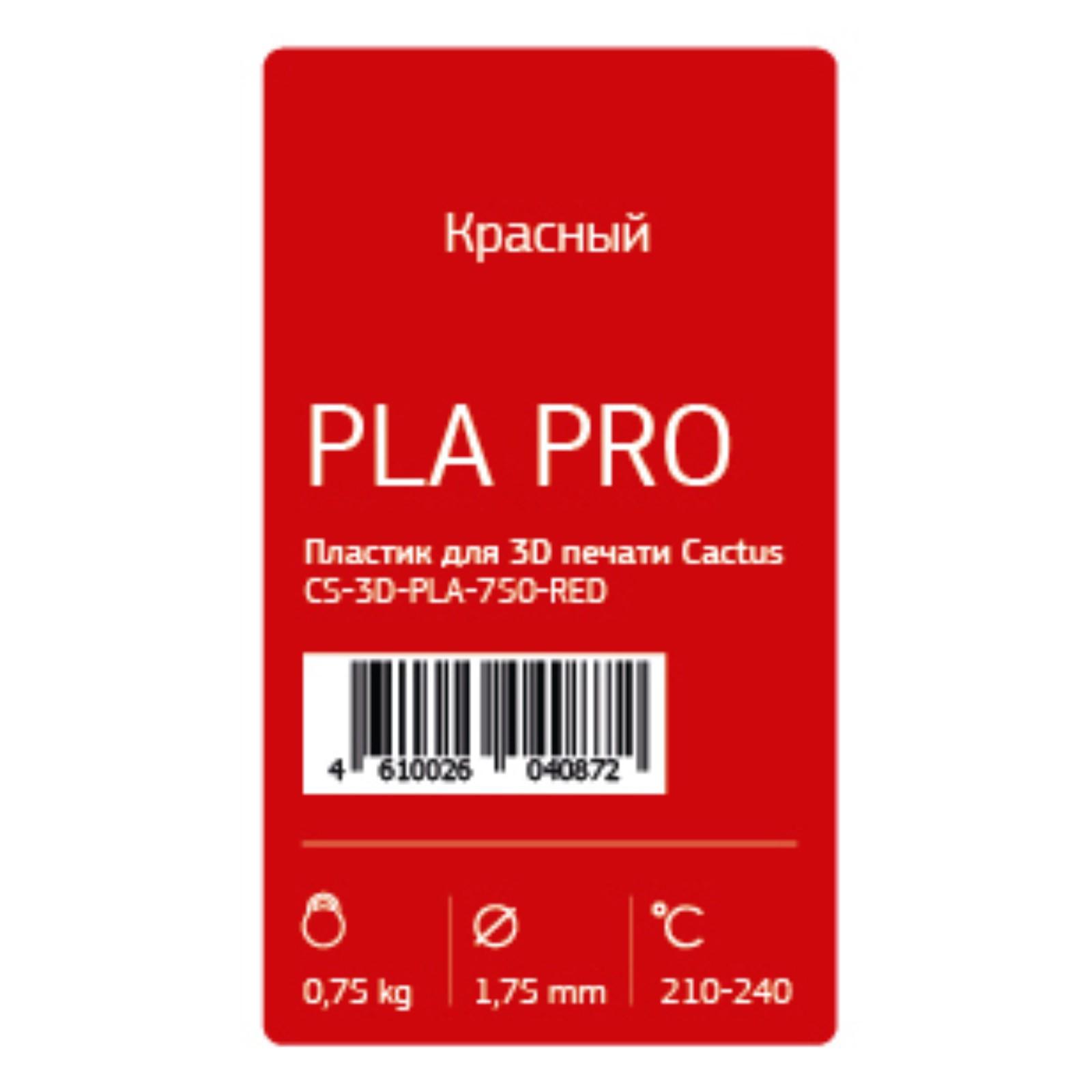 Пластик для 3D принтера Cactus (CS-3D-PLA-750-RED), PLA Pro, диаметр 1.75, 0.75 кг, красный 937663