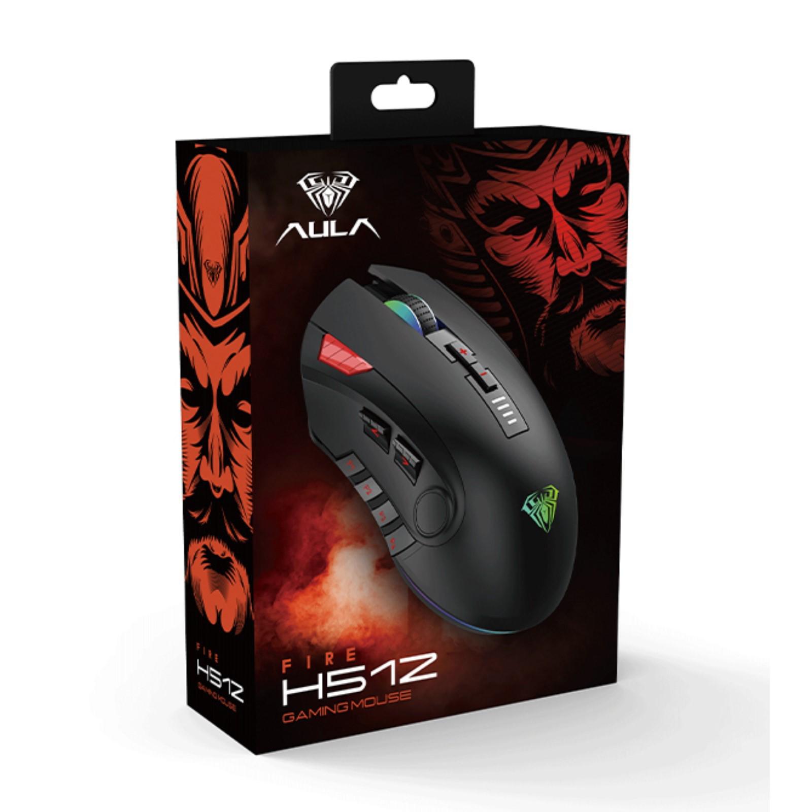 Мышь AULA H512, игровая, проводная, подсветка, 5000 dpi, USB, чёрная