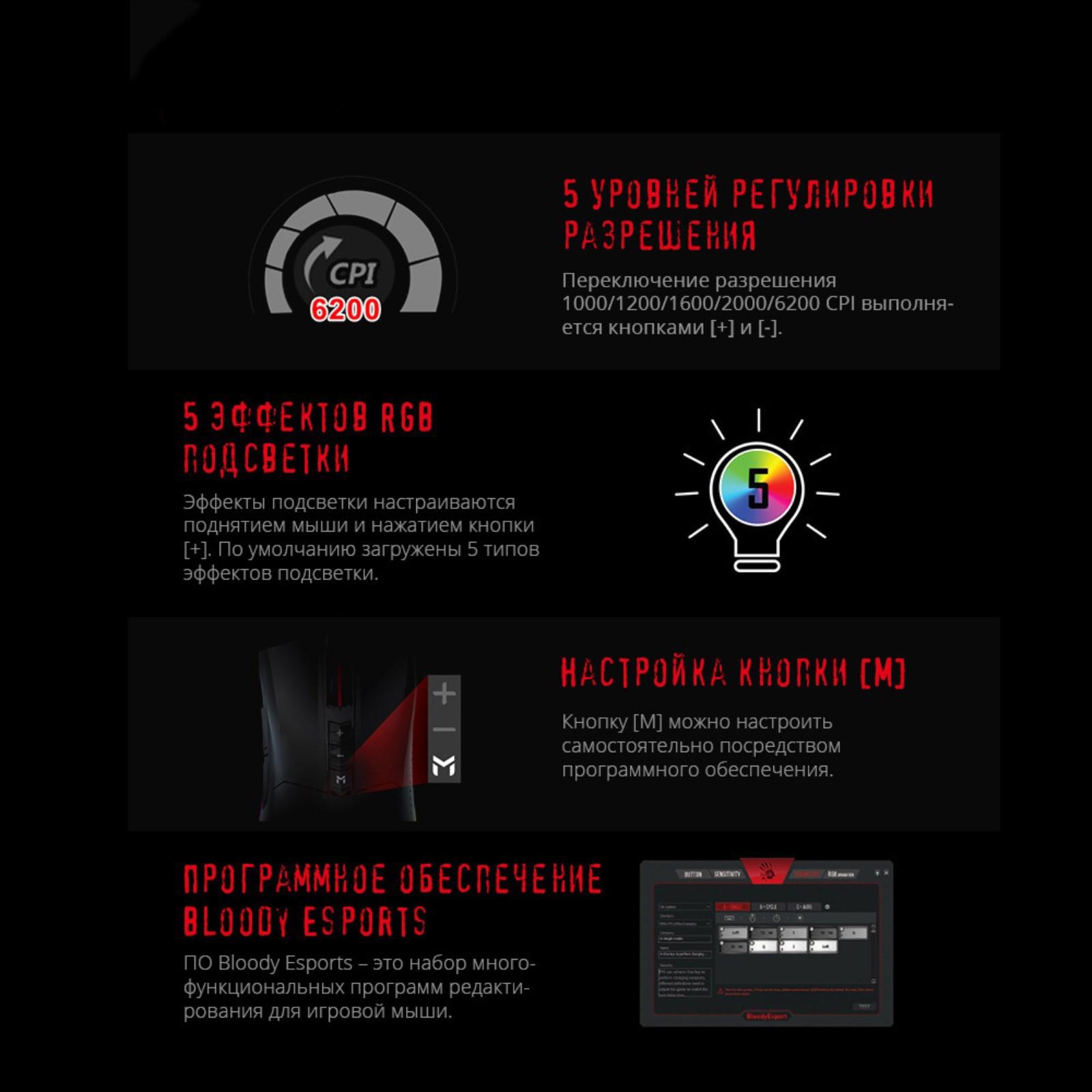 Мышь A4Tech Bloody ES9, оптическая, проводная, 6200dpi, USB, чёрный