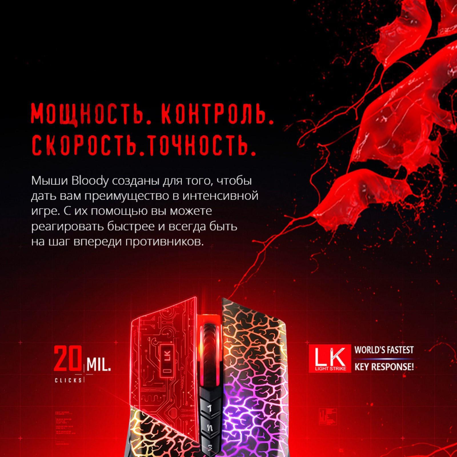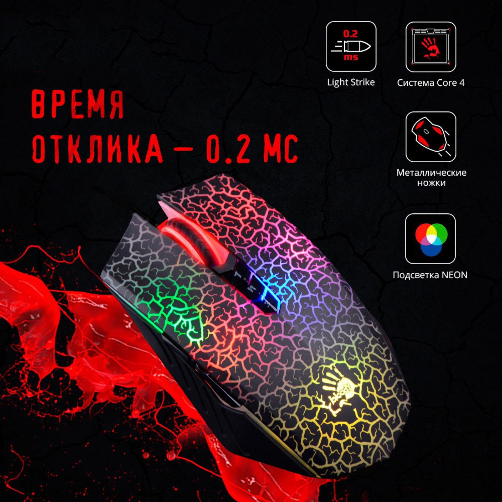 Мышь A4Tech Bloody A70, оптическая, проводная, 6200dpi, USB, чёрный с рисунком