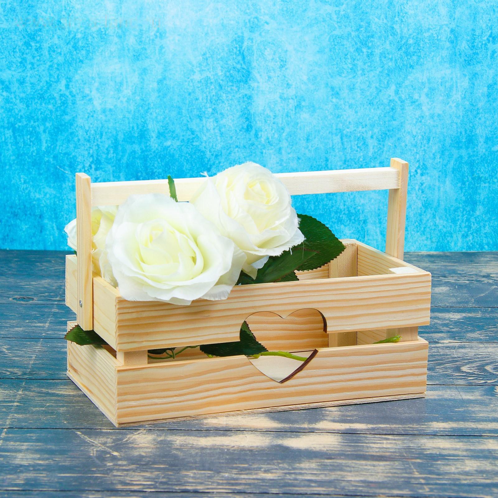 Кашпо деревянное 24.5×13.5×9 см "Двушка Лайт" реечное, сердце Дарим Красиво