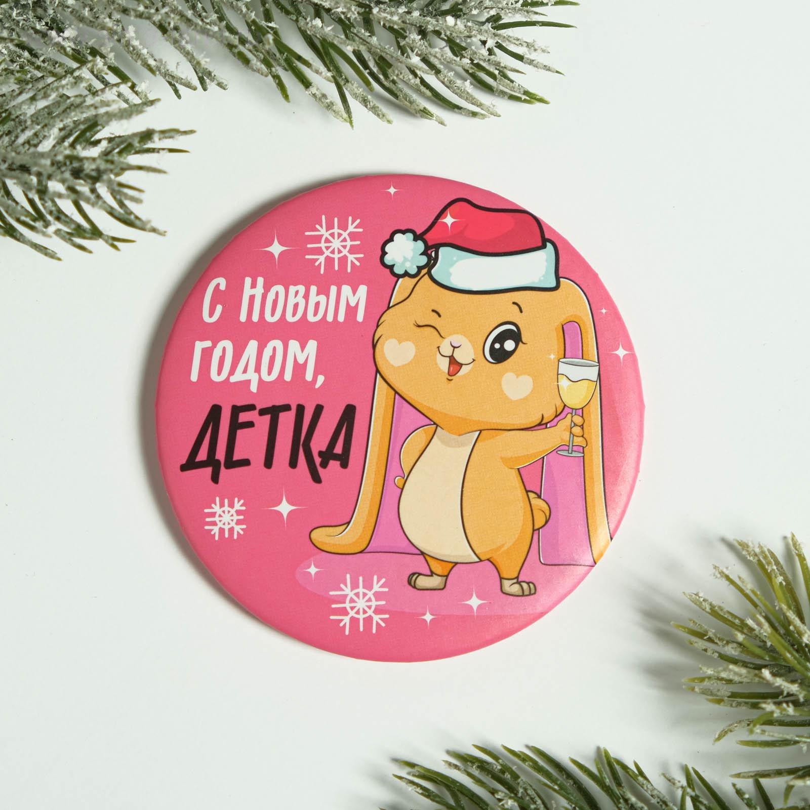 Зеркало на клапане "С новым годом, детка", диам. 7 см