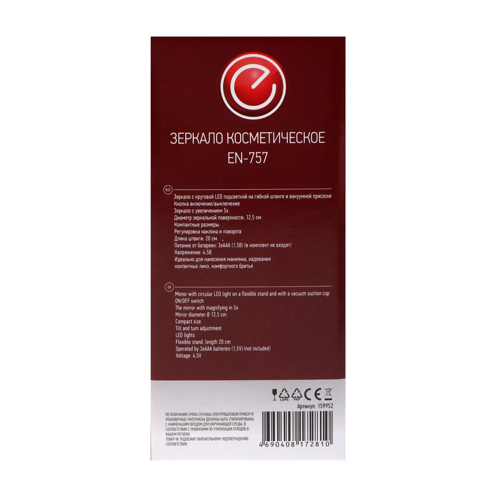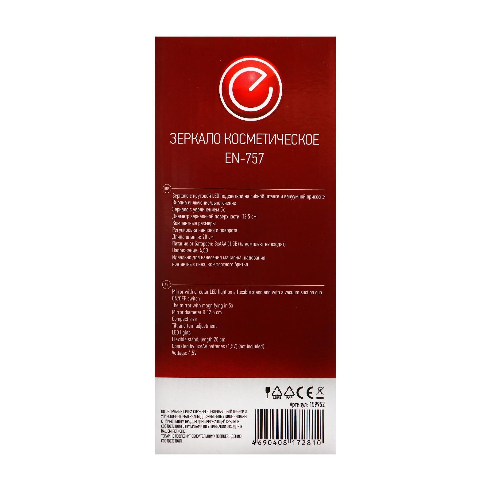 Зеркало ENERGY EN-757, подсветка, увеличение 5Х, d=12.5 см, 3хАА