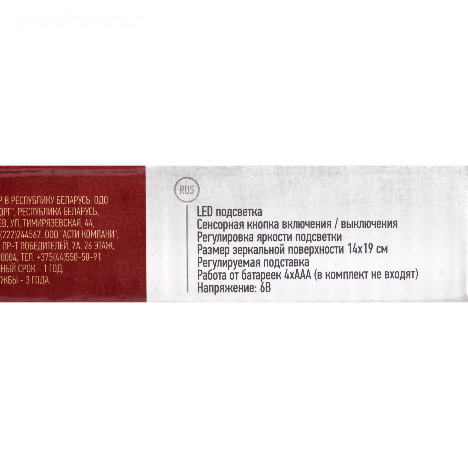 Зеркало ENERGY EN-703, LED подсветка регулируемая, 14 х 19 см, 4хААА