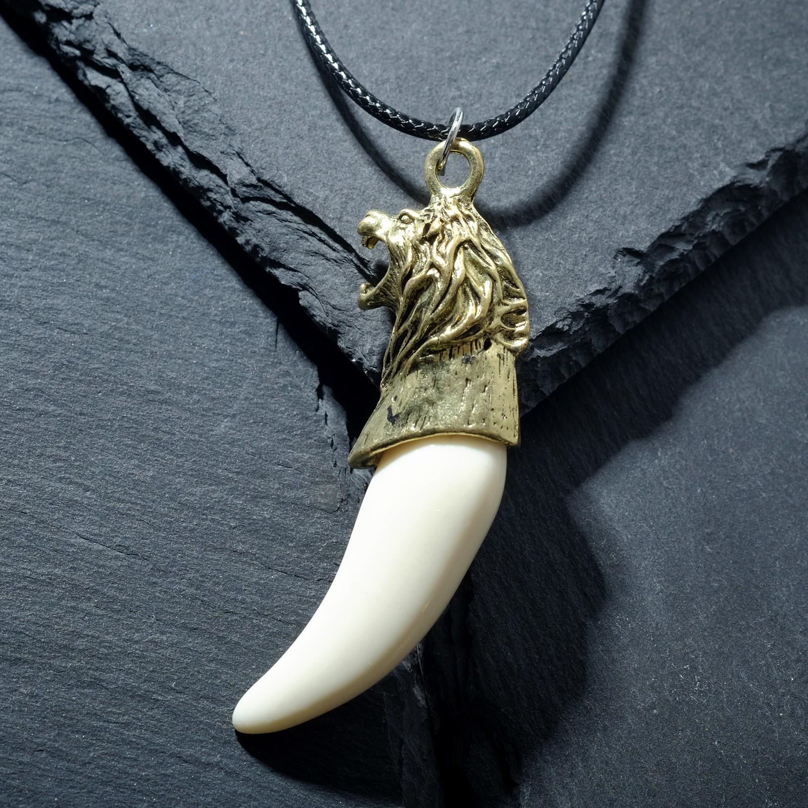 Кулон унисекс "Клык льва", цвет белый в чернёном золоте, 45 см