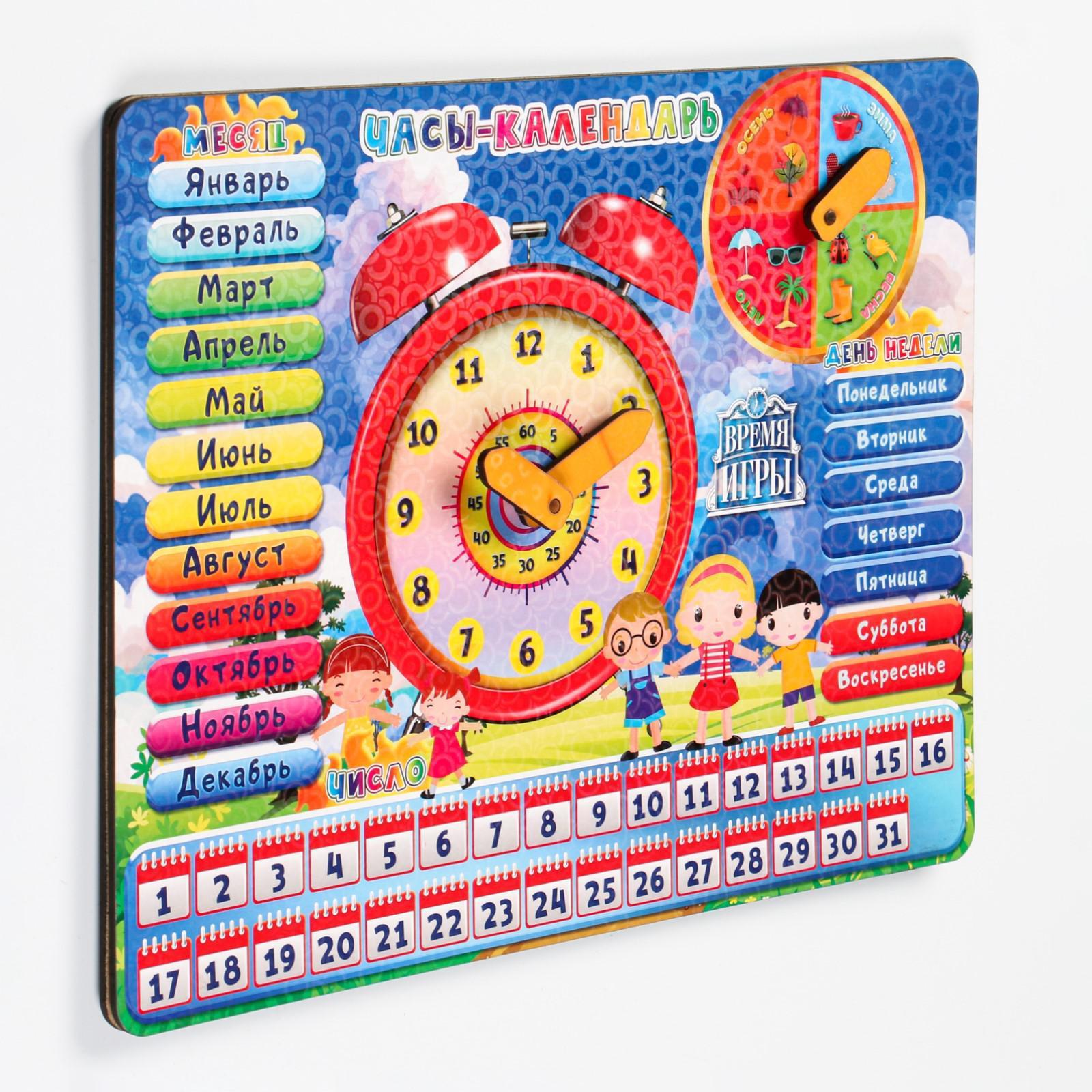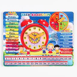 Часы-календарь — это многофункциональная развивающая игрушка для знакомства малыша с понятием времени. Представляет собой красочный деревянный планшет с подвижными стрелками.