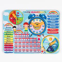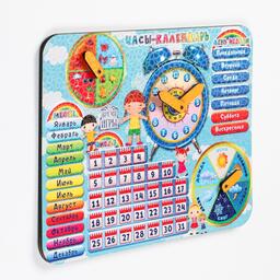 Часы-календарь — это многофункциональная развивающая игрушка для знакомства малыша с понятием времени. Представляет собой красочный деревянный планшет с подвижными стрелками.