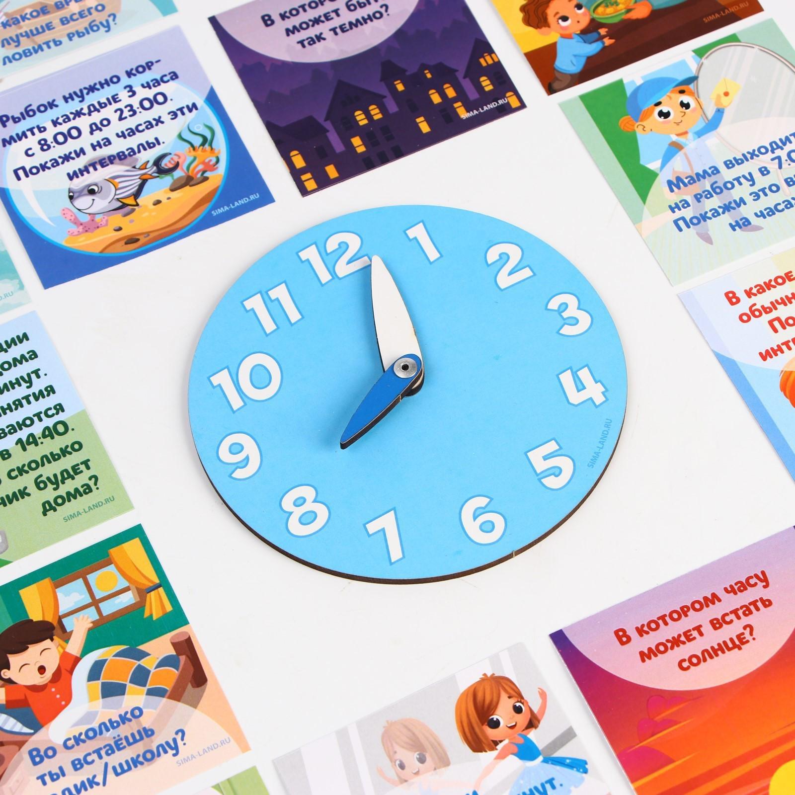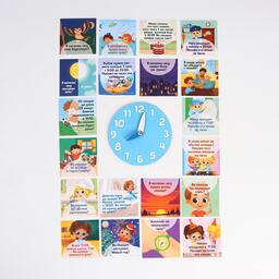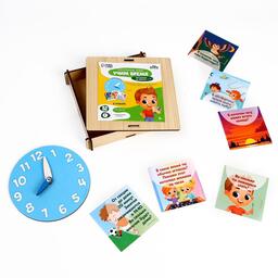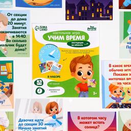 С настольной игрой ребёнок познакомится с понятием времени. Выполняя интересные задания, малыш научится определять часы и минуты по аналоговым и цифровым приборам.