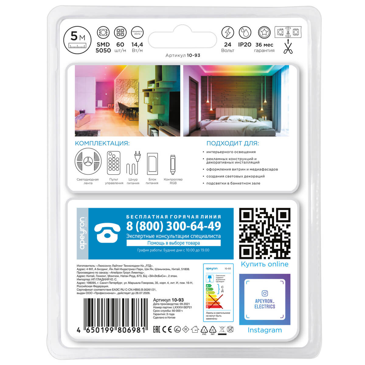 Комплект адресной светодиодной ленты Ape...