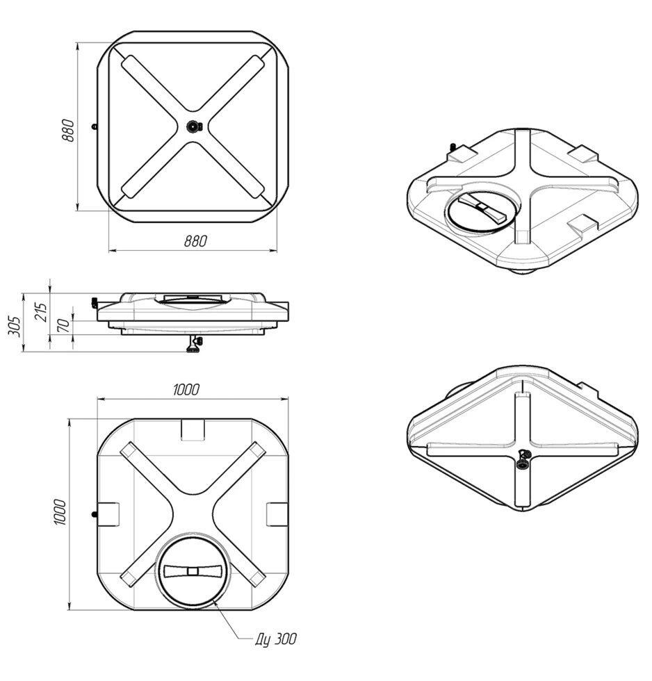 Бак для душа Rostok 110 л с лейкой (1000х 215х 1000)
